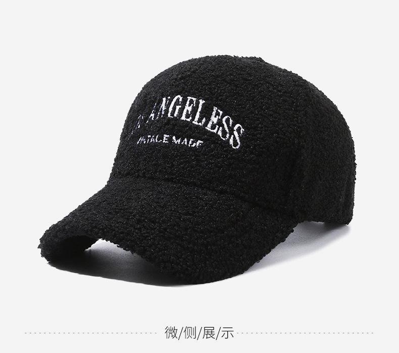 Novo Outono e Inverno Lã De Cordeiro Boné De Beisebol Carta Bordada Moda Boné Quente Coreano Moda Chapéu Fresco Mulheres