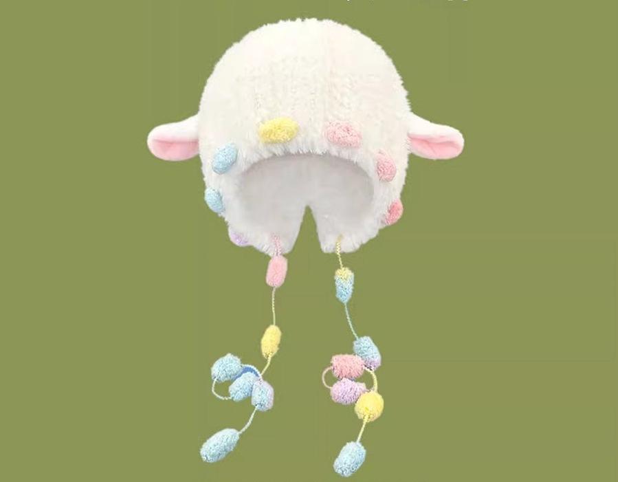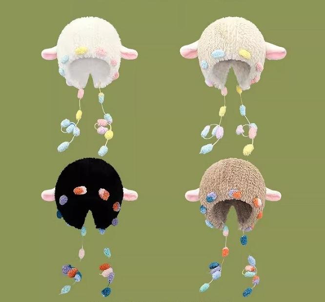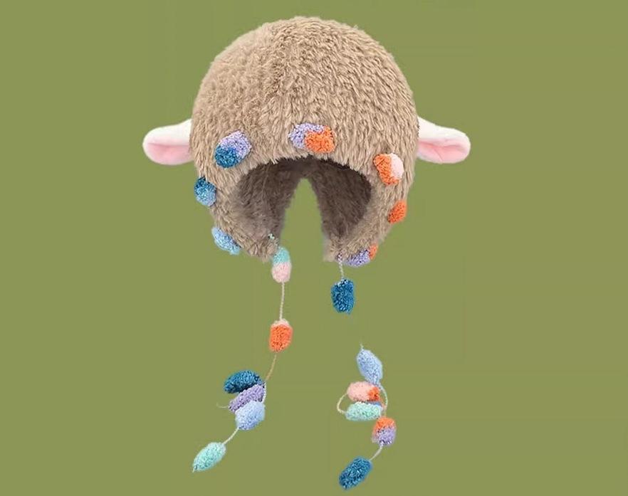 Japonês Macio Bonito Cordeiro Pelúcia Lei Feng Chapéu Feminino Outono e Inverno Quente All-match Colorido Bola Alça Proteção Orelha Chapéu Moda
