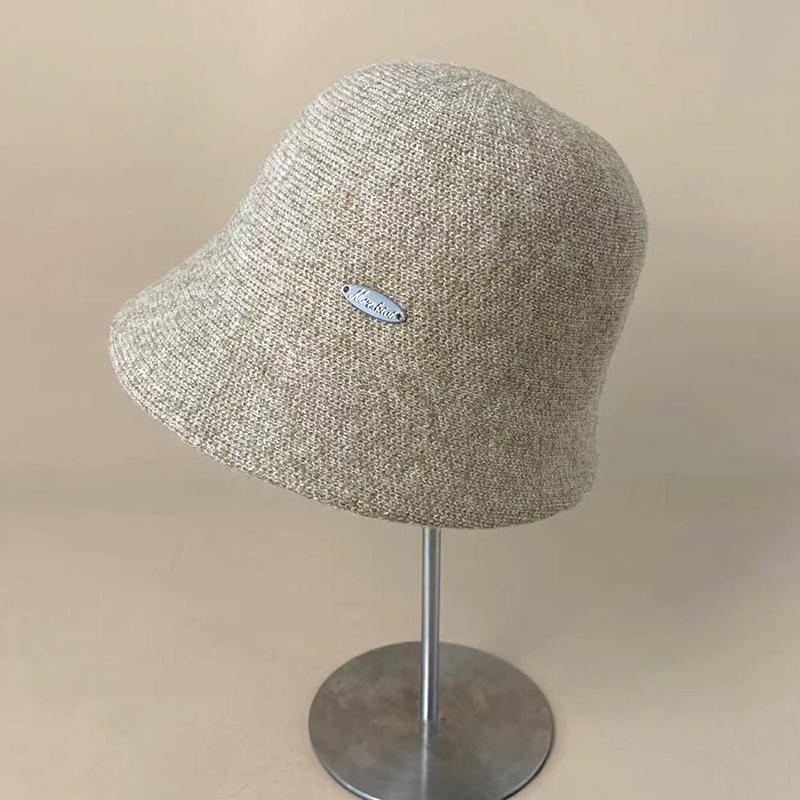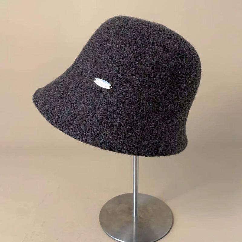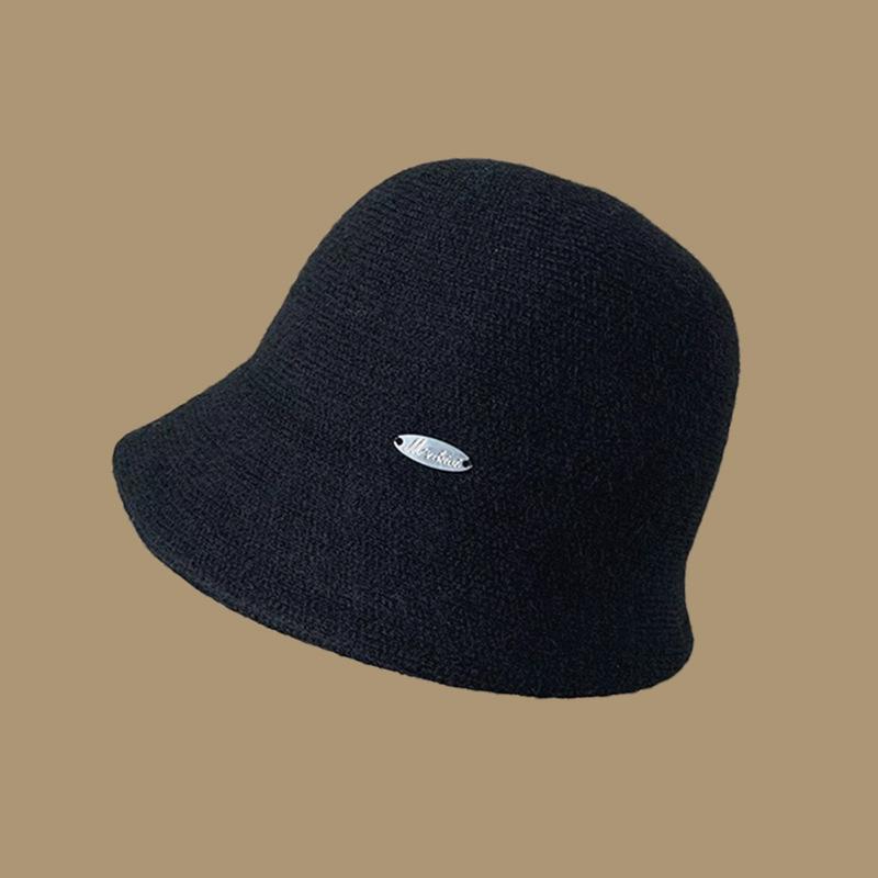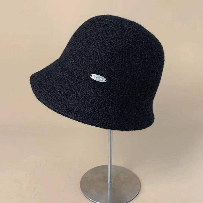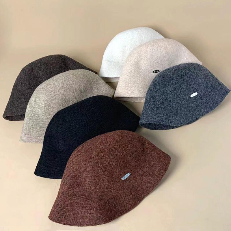 Chapéu de pescador de malha feminino outono e inverno all-match preto chapéu de balde para rosto pequeno chapéu de lã quente cor sólida chapéu de panela simples