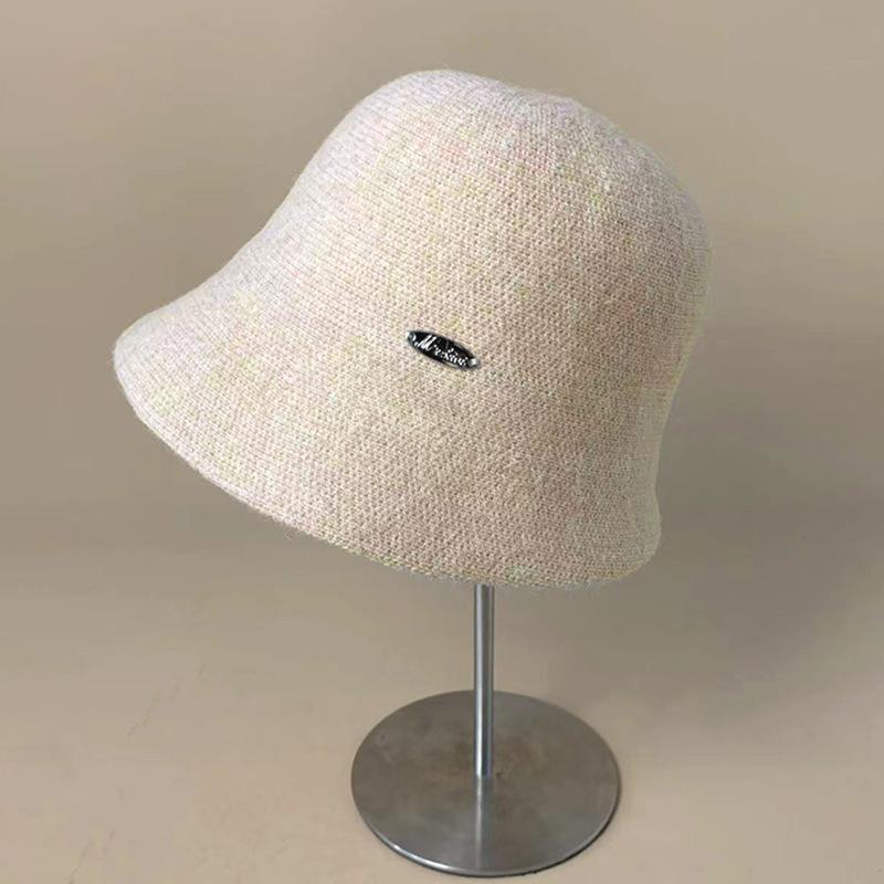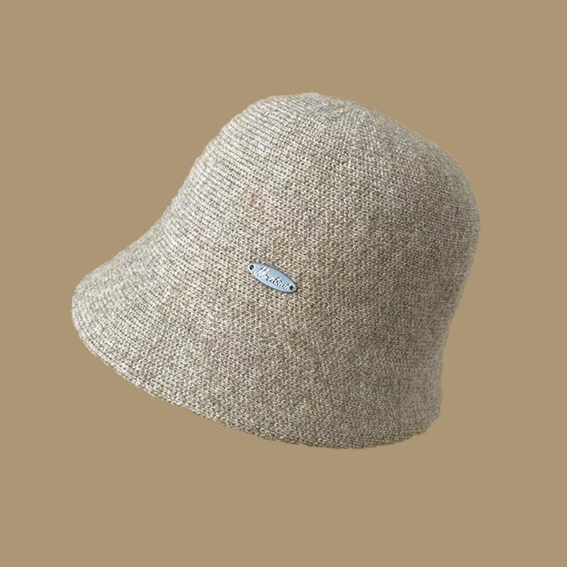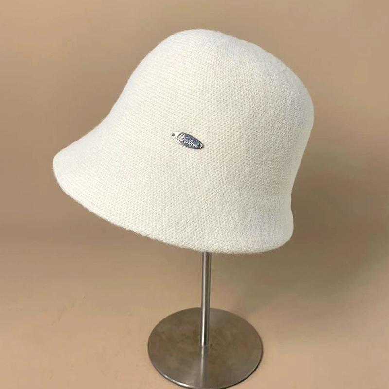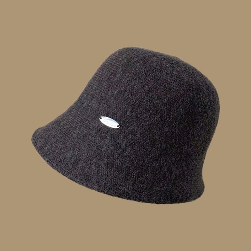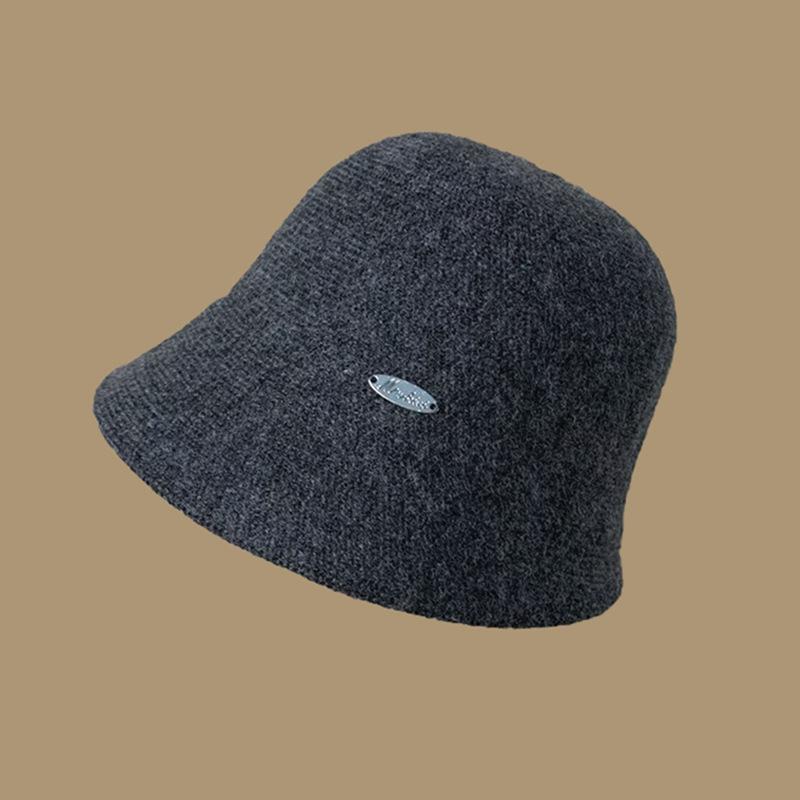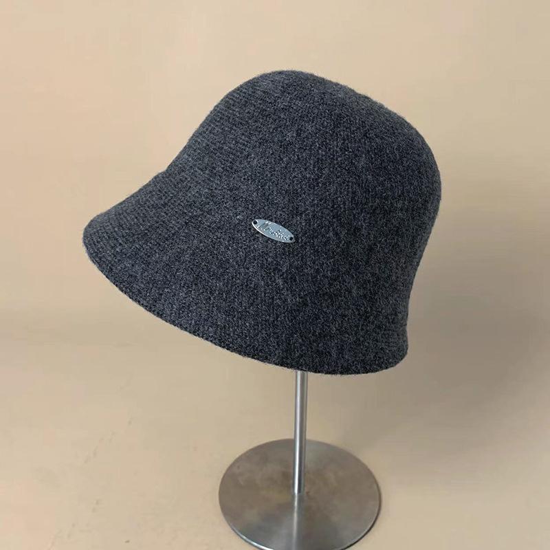 Chapéu de pescador de malha feminino outono e inverno all-match preto chapéu de balde para rosto pequeno chapéu de lã quente cor sólida chapéu de panela simples