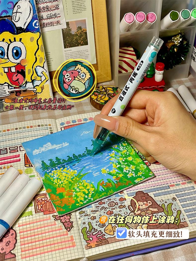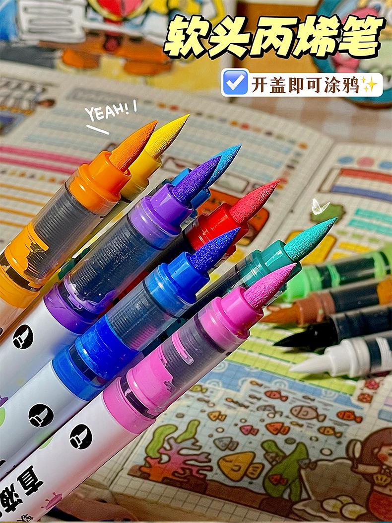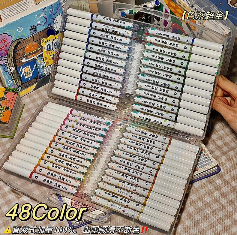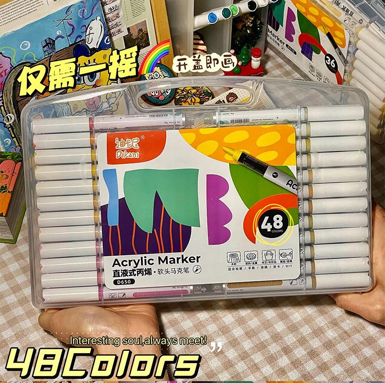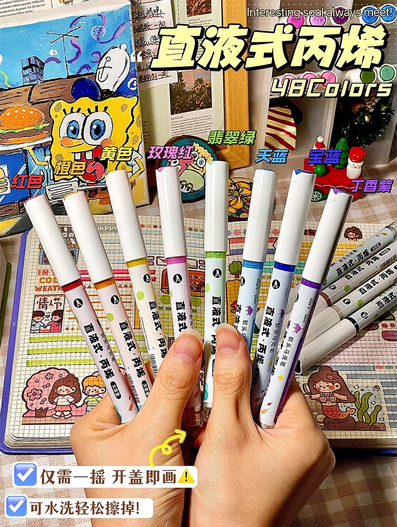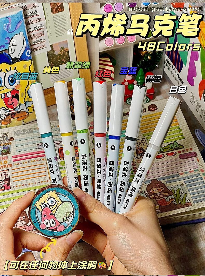 Livrinho Vermelho com marcador acrílico à base de água 48 cores à prova d'água que não desbota grafite diy sapatos registro caneta de pintura