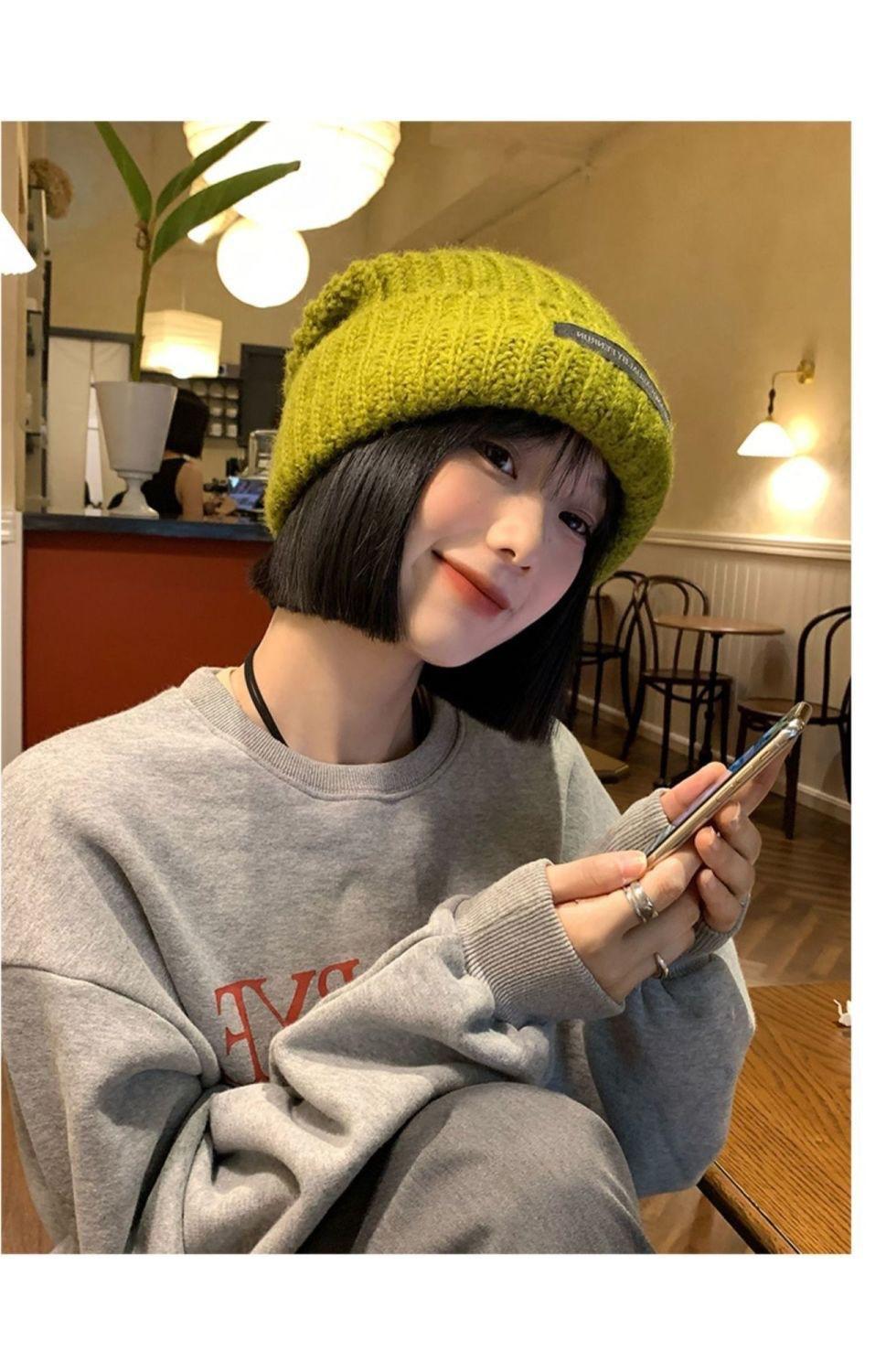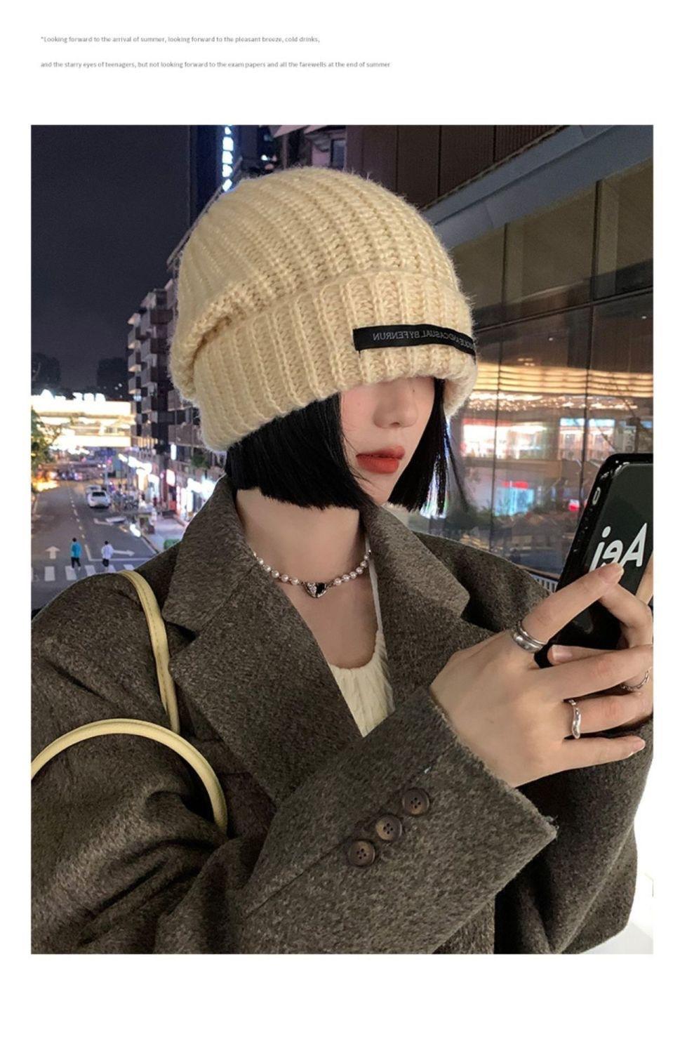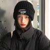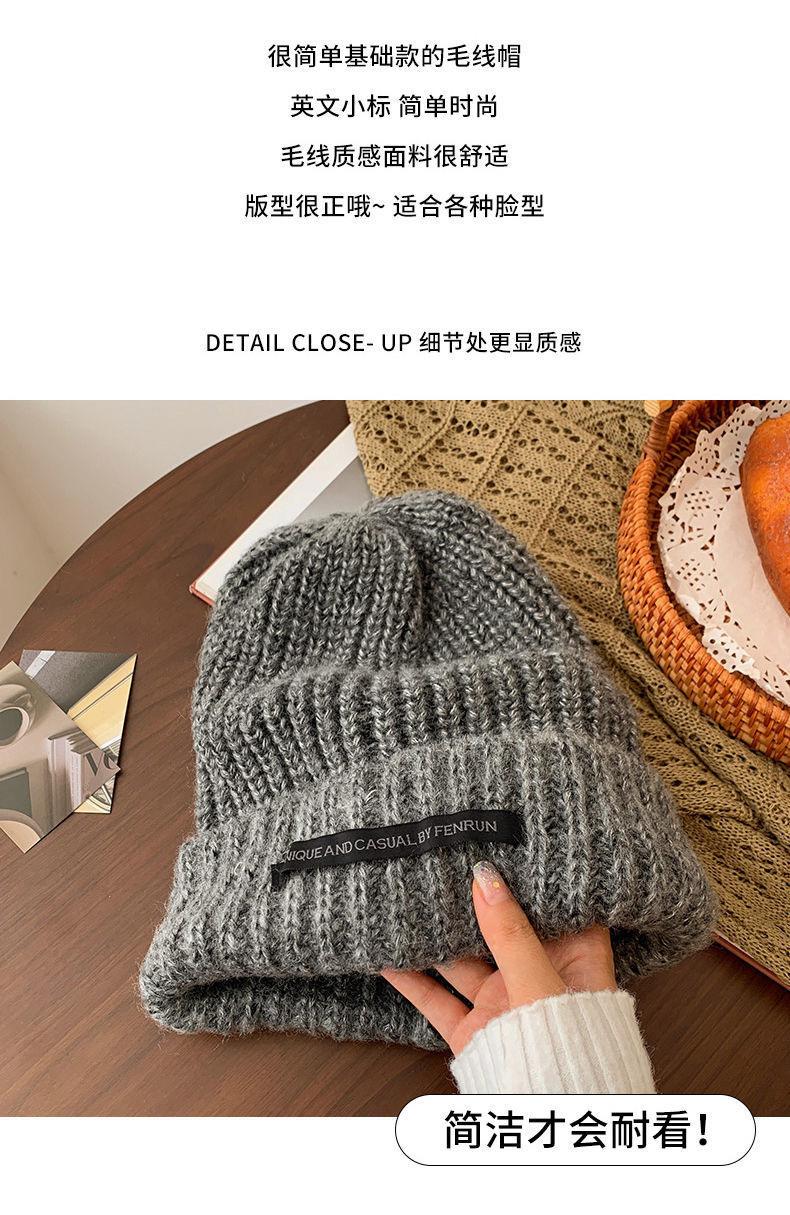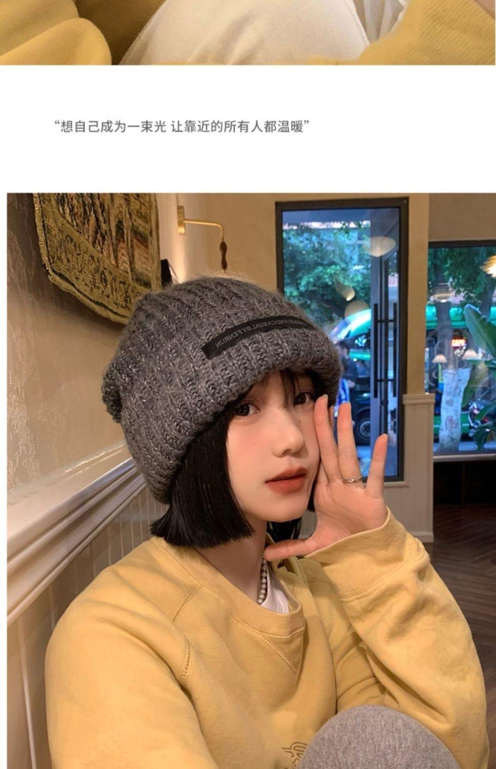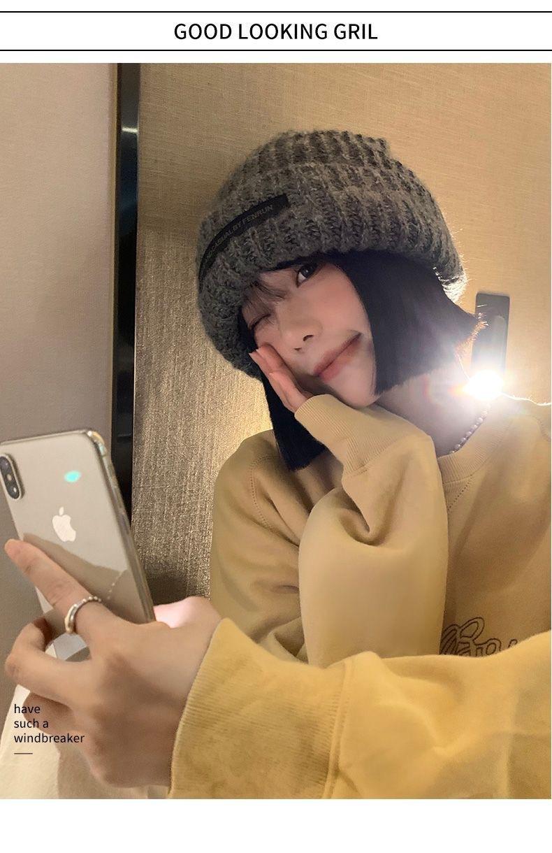 Chapéu Feminino Outono e Inverno Novo Chapéu de Pilha de Patch Chapéu de Lã de Cabeça Grande Chapéu de Lã de Todos os Tipos Mostrando o Rosto Pequeno Chapéu de Malha Quente Chapéu Frio
