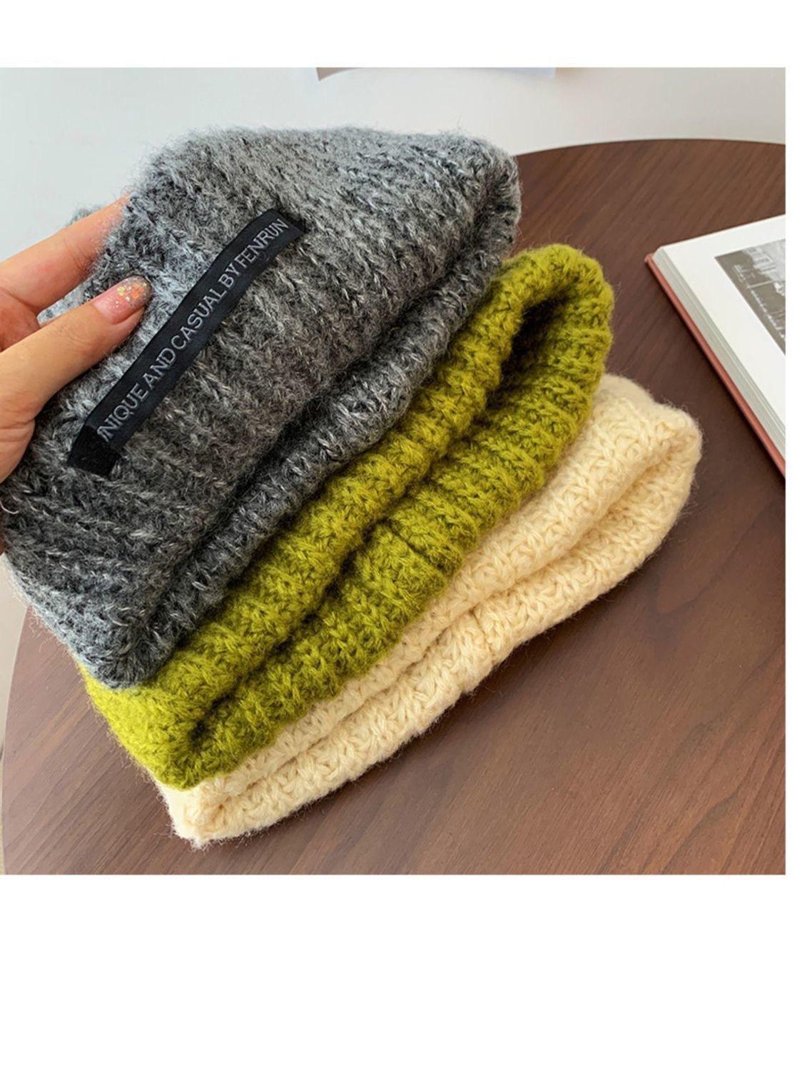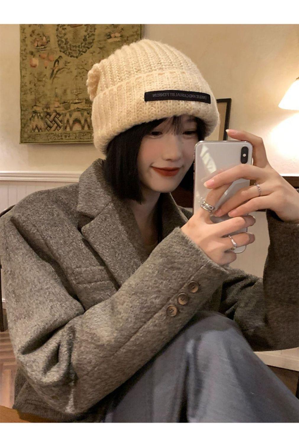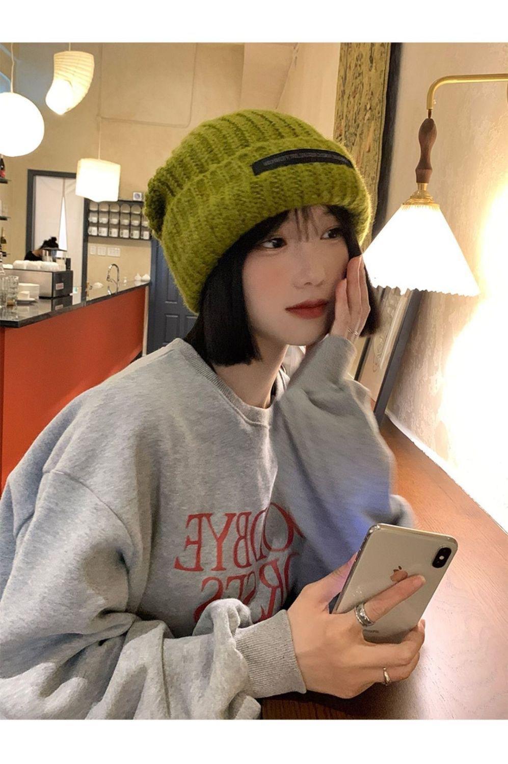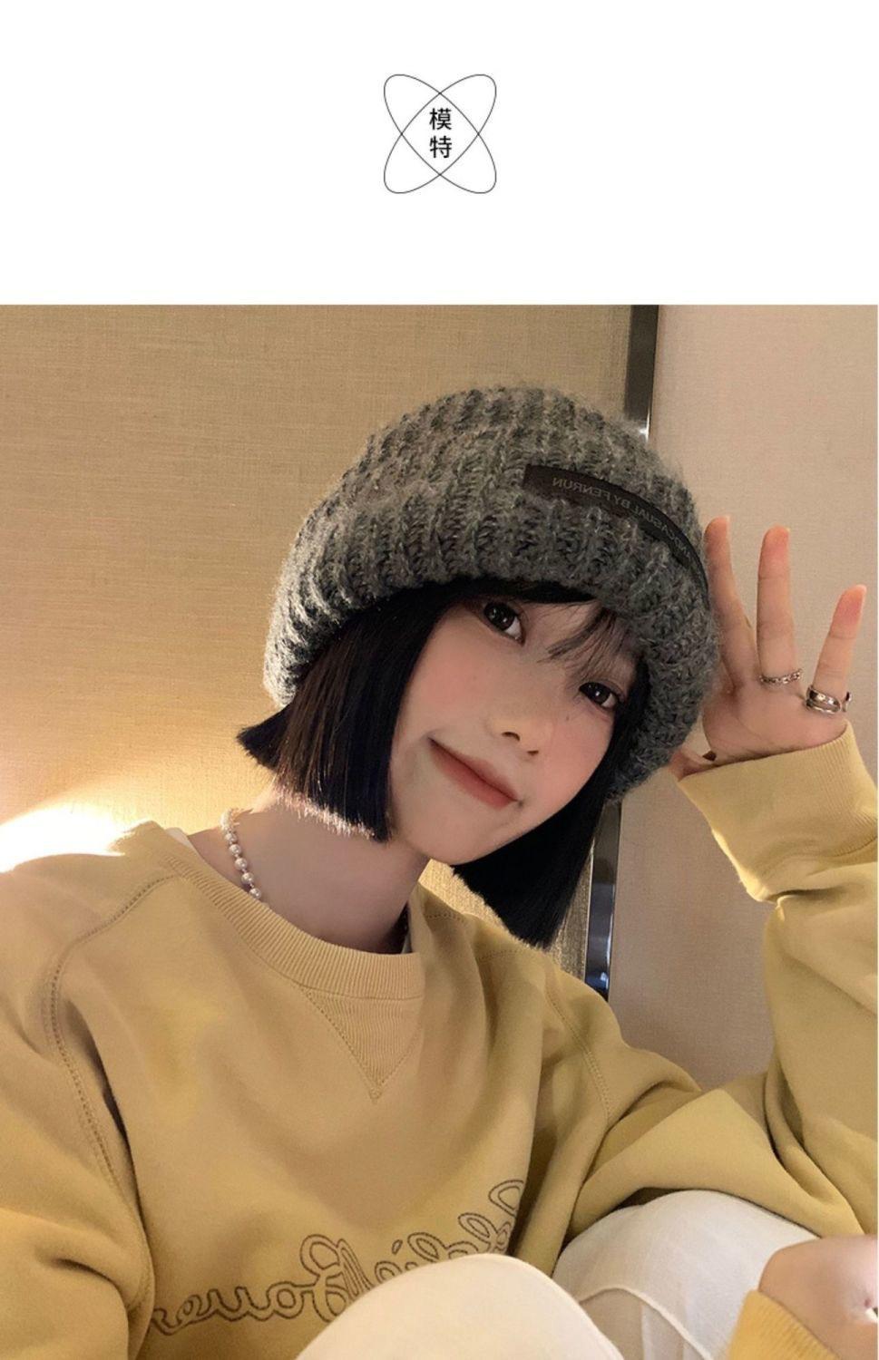 Chapéu Feminino Outono e Inverno Novo Chapéu de Pilha de Patch Chapéu de Lã de Cabeça Grande Chapéu de Lã de Todos os Tipos Mostrando o Rosto Pequeno Chapéu de Malha Quente Chapéu Frio