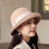 Chapéu alto feminino de lã, chapéu de bacia, meia-idade e idosos, novo outono e inverno, elegante, arco, moda britânica, chapéu de pescador, tudo em um