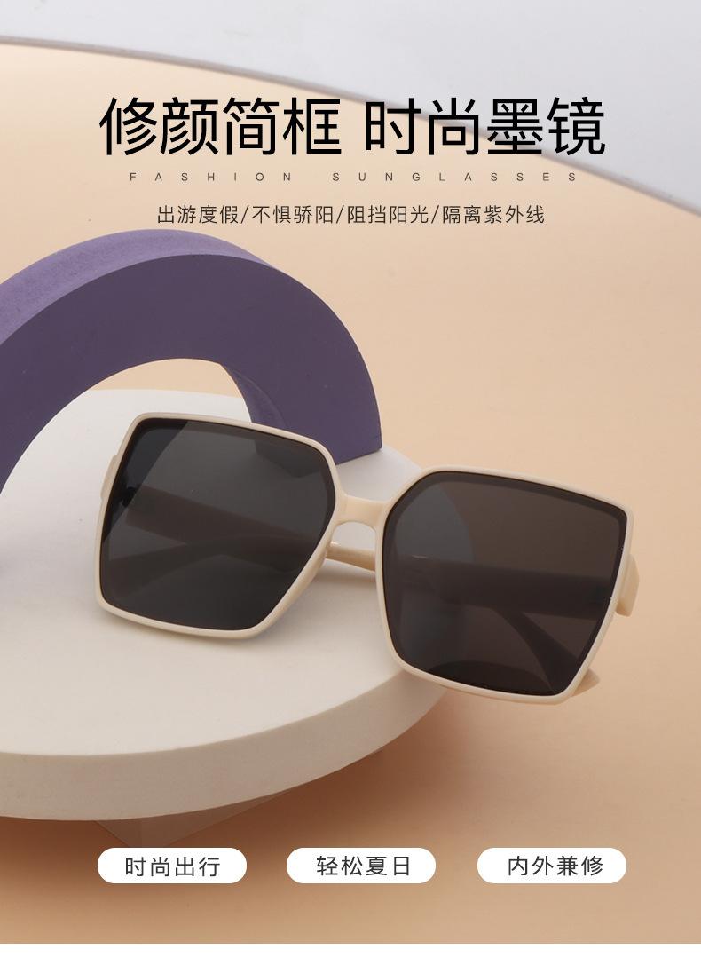 Fotografia de rua estilo coreano Óculos de sol de alta classe Óculos de sol polarizados pretos Óculos de sol femininos Rosto grande mostrando rosto Pequeno Internet Letras vermelhas Moda Óculos de sol