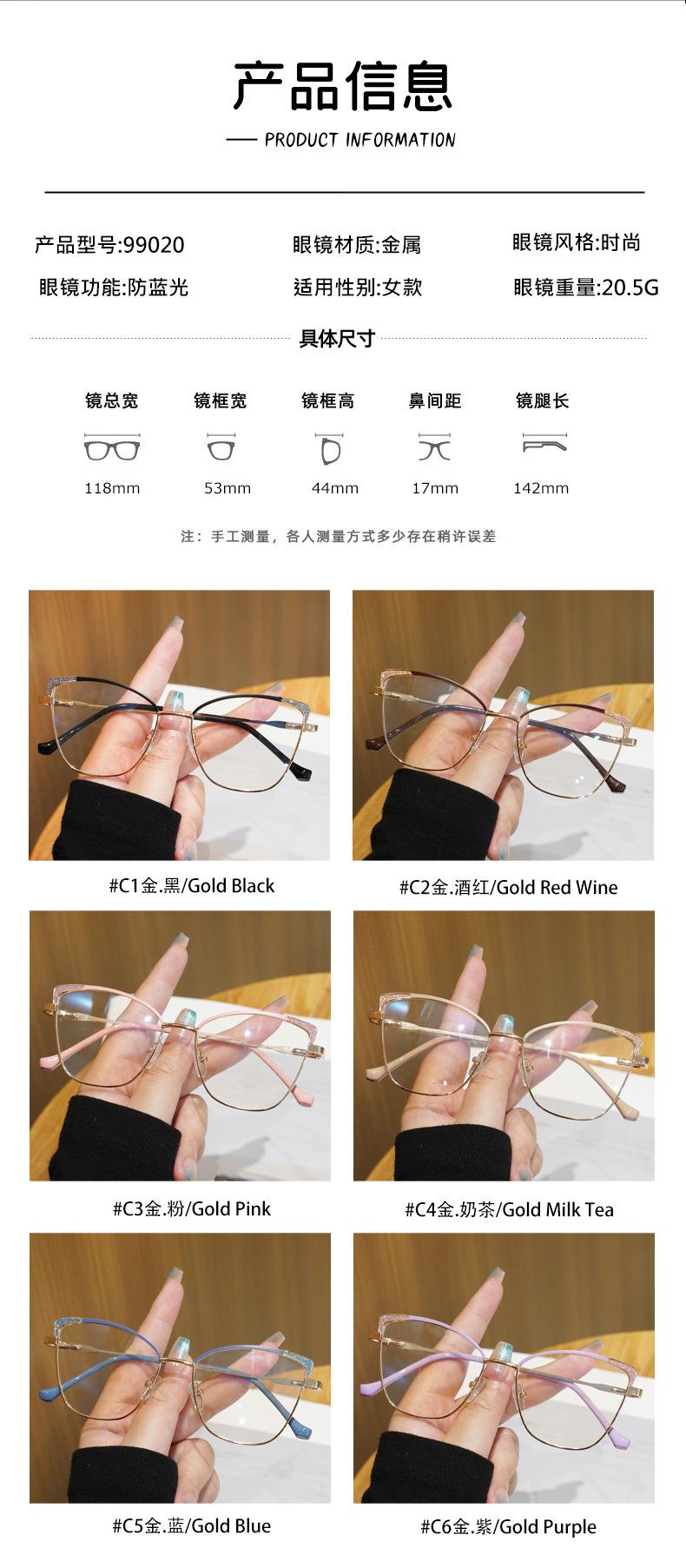 Óculos olho de gato miopia feminino grau ajustável anti-luz azul espelho plano sem maquiagem artefato alto sentido armação grande armação de olho