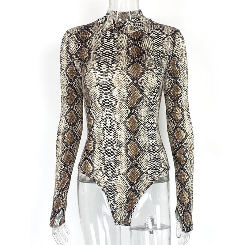 Europeu e americano 2023 novas roupas femininas outono e inverno macacão modelador de corpo estampa de cobra slim bottoming gola alta camiseta de manga comprida para mulheres