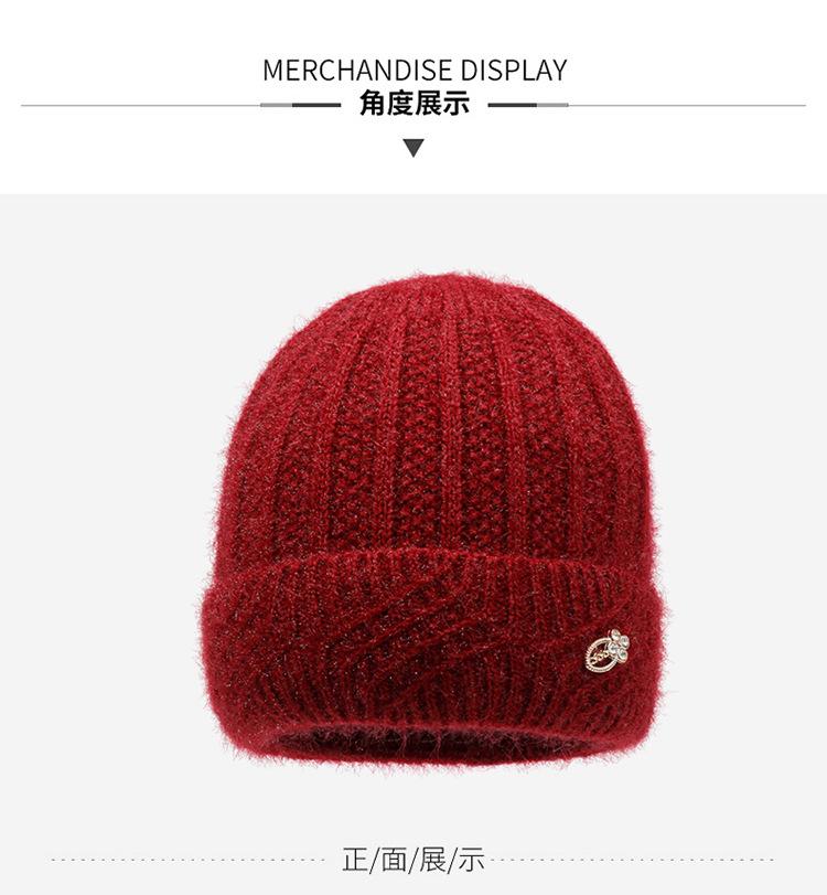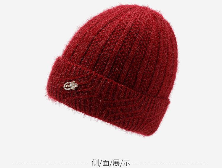 Touca de lã para mãe inverno forrada com lã grossa quente chapéu para frio ao ar livre chapéu de tricô para senhora idosa meia-idade atacado