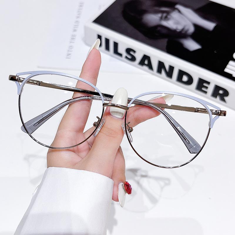 2025 Nova Moda Masculina Negócios Armação Linha Sobrancelha Luz Azul Espelho Plano Metal Armação Completa Armação Óculos Miopia para Mulheres
