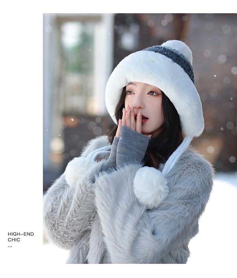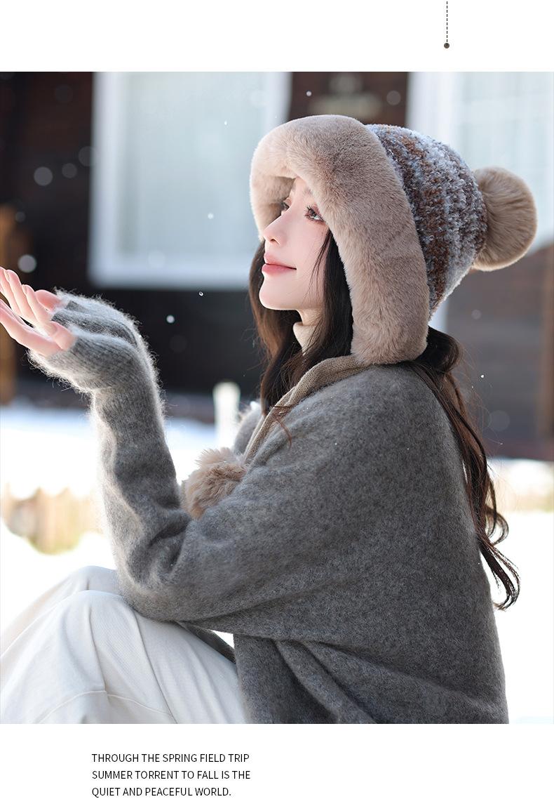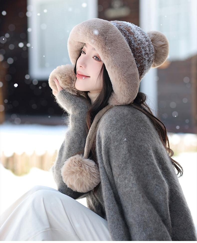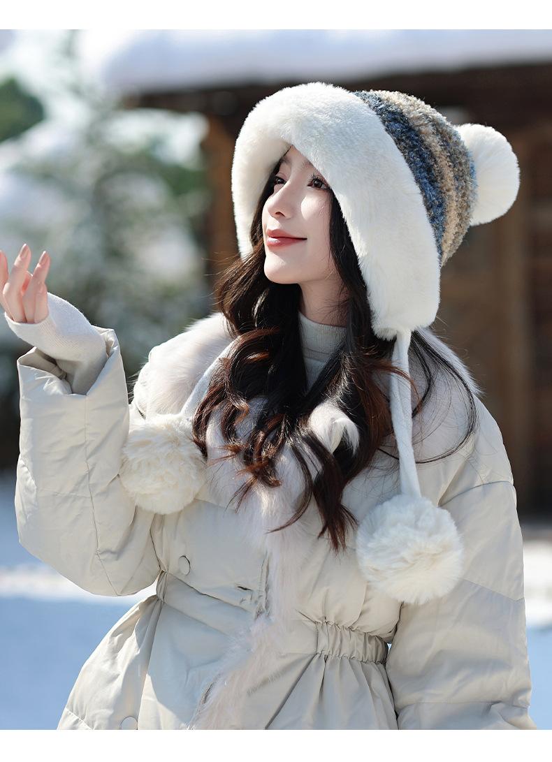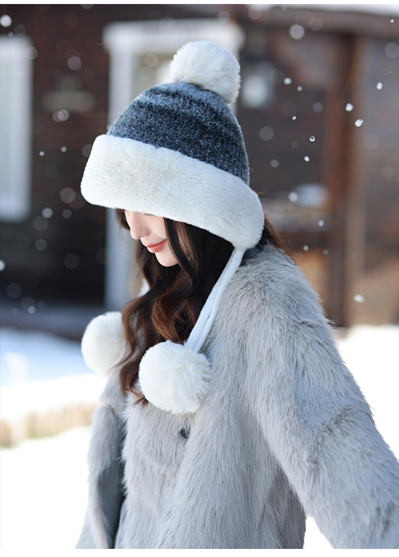 Inverno forrado de lã espessado pelúcia proteção auricular chapéu de lã coreano bonito grande cabeça chapéu de lã quente malha