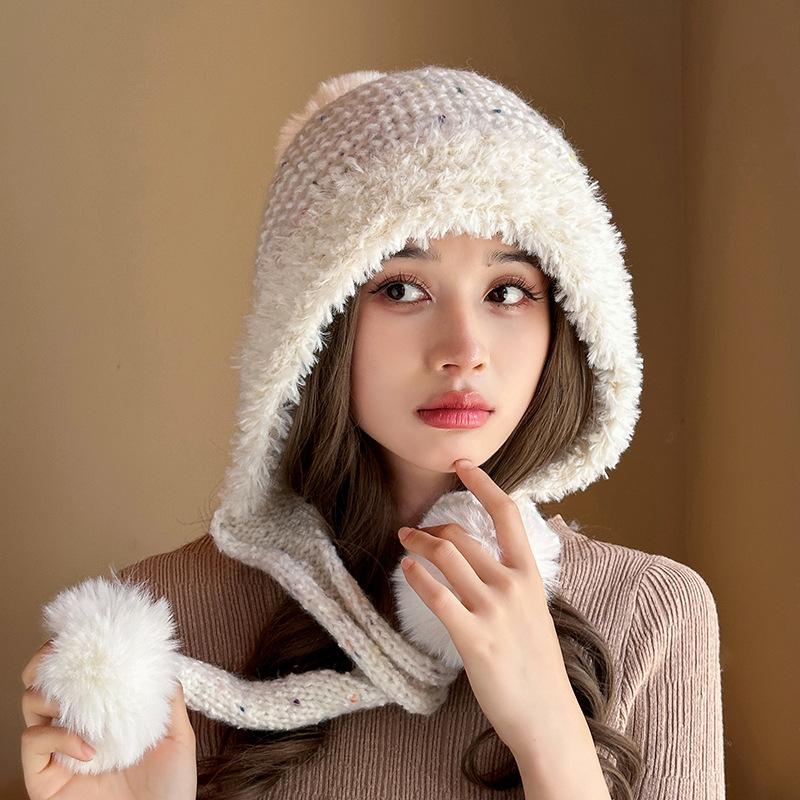 Chapéu de malha de flor da moda estilo coreano inverno ao ar livre equitação à prova de frio chapéu de lã quente chapéu de bola de pele em estoque cabelo