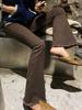 Jeans estilo coreano retrô desfiado micro flared feminino outono 2023 nova cintura alta emagrecimento slim stretch calças de esfregão