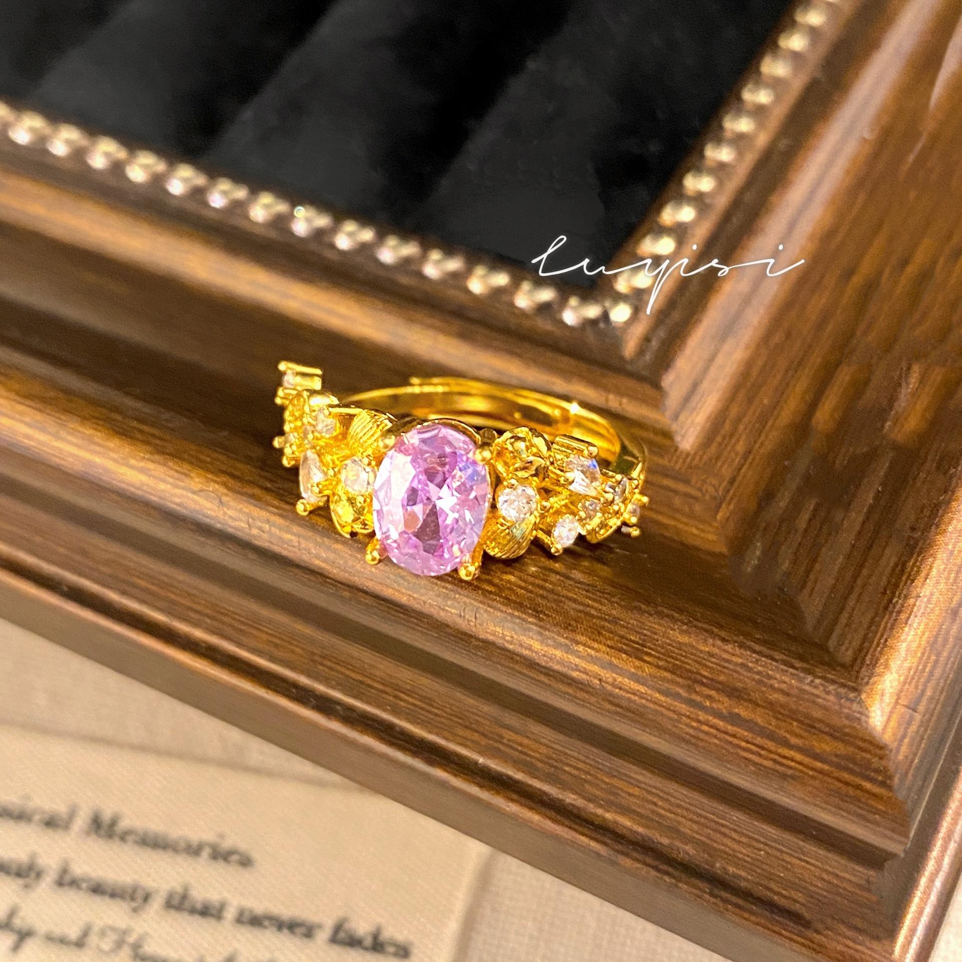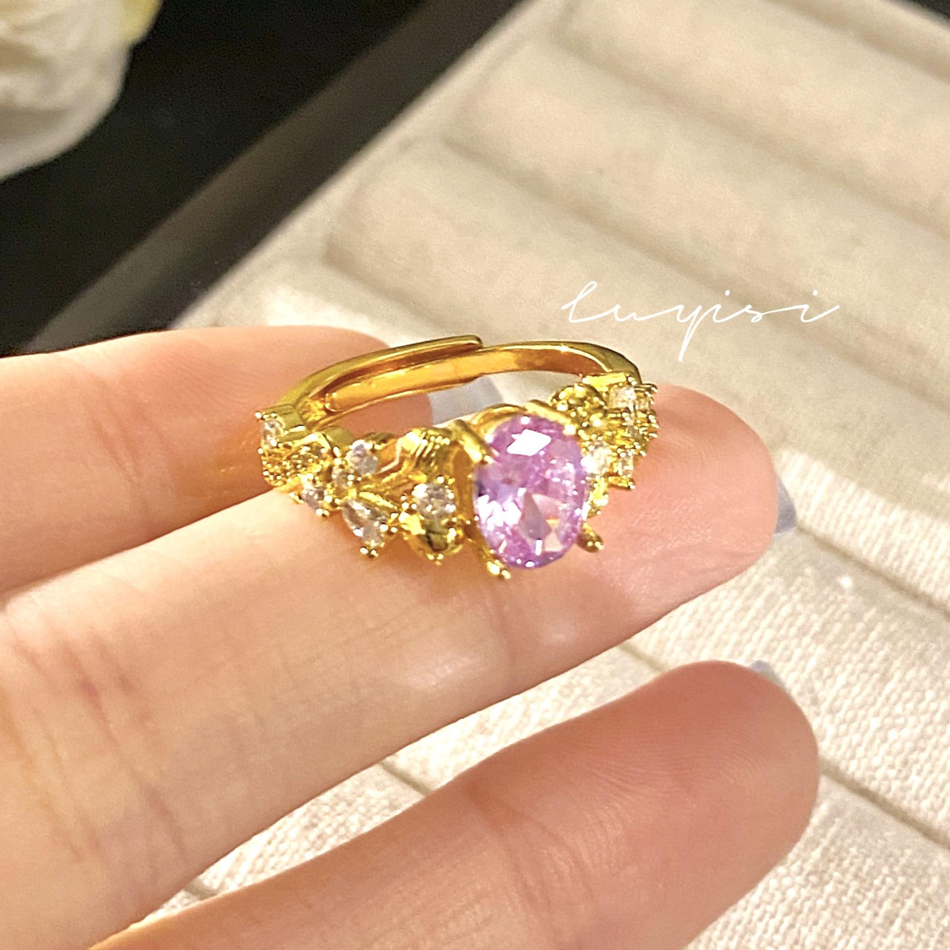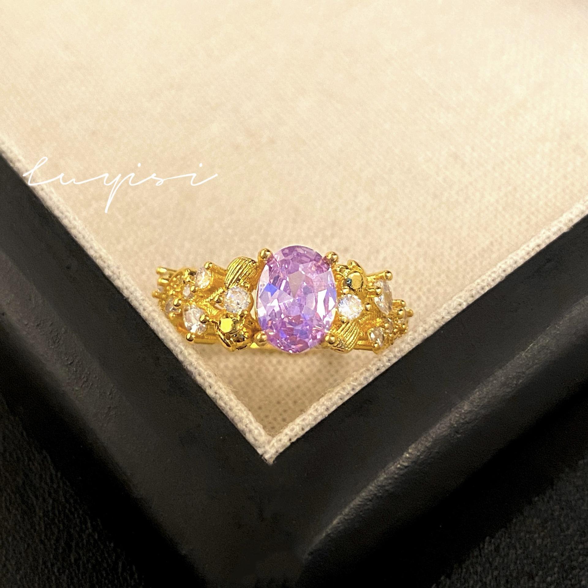 Compre Anel de dedo escovado feito à mão, de luxo, antigo, leve, de nicho, fashion, francês, retrô, nove, roxo, fogo, anel de bauhinia no atacado no Joom.pro