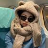 Chapéu de proteção de orelha de urso fofo de inverno feminino, chapéu fofo de malha Wai, chapéu de ciclismo à prova de frio, chapéu de pulôver peludo