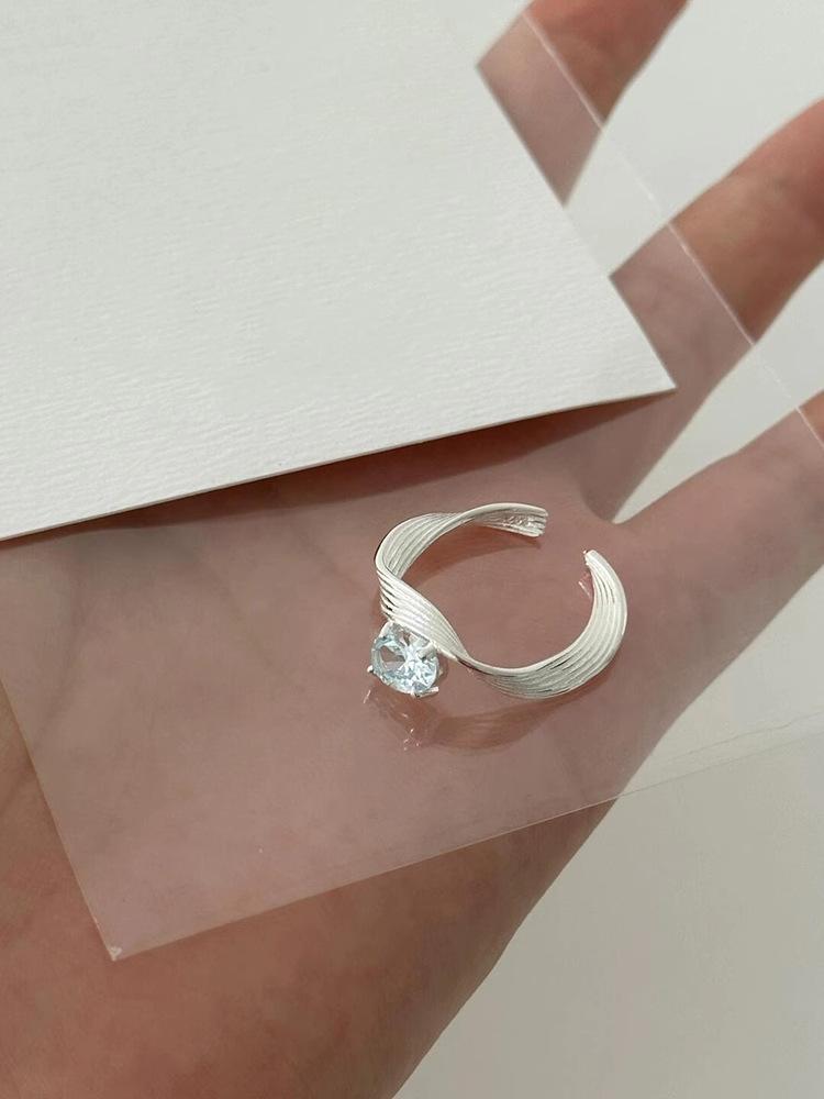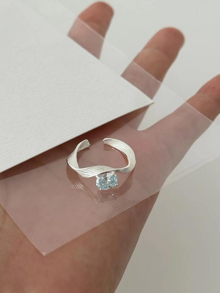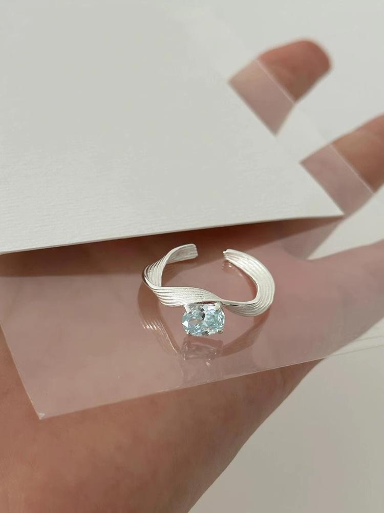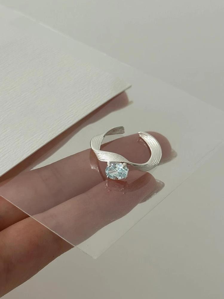 Coreia do Sul Novo Anel de Zircão Azul Onda Geométrica Elegante Aberto Ajuste Anel de Dedo Indicador