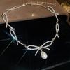 Colar de borla cruzada de cristal roxo nicho gargantilha de pérolas multicamadas leve de luxo high-end elegante clavícula cadeia
