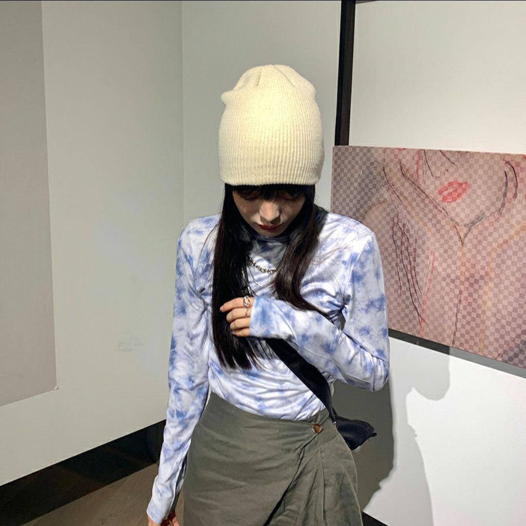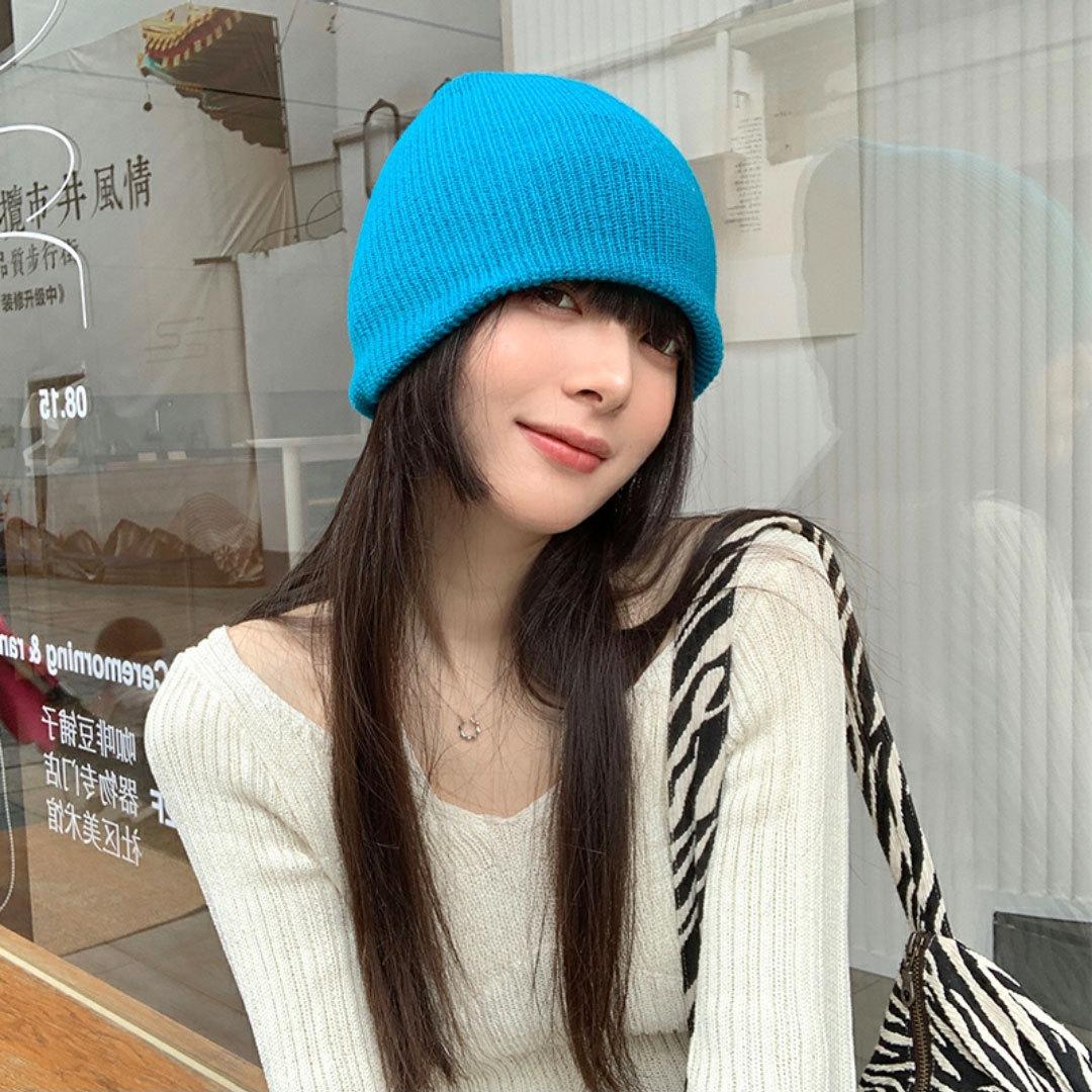 Chapéu das mulheres outono e inverno estilo coreano estilo japonês chapéu de lã para todos os jogos na moda Coreia do Sul proteção para os ouvidos quente celebridade da Internet chapéu de malha azul chapéu frio