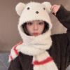 Chapéu e cachecol de malha, conjunto de duas peças, feminino, outono e inverno, proteção de ouvido quente, capuz para rosto, gorro de lã com pescoço pequeno