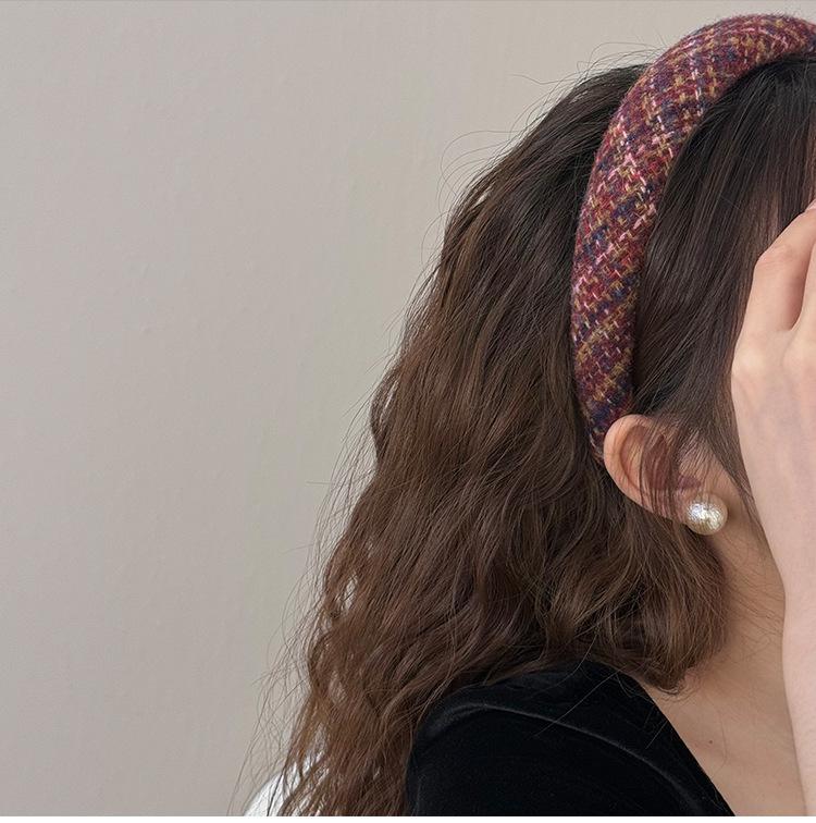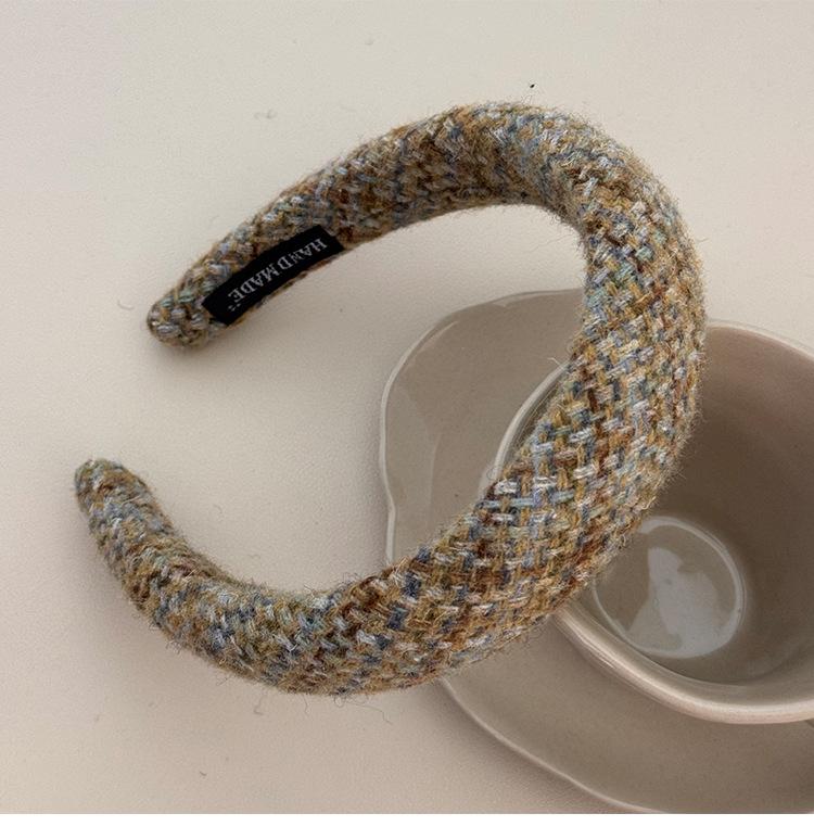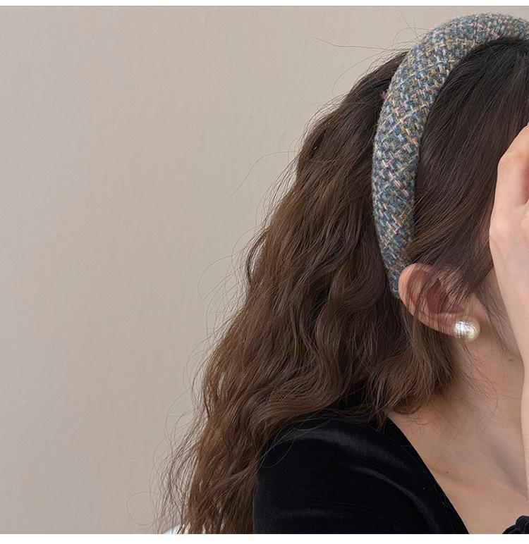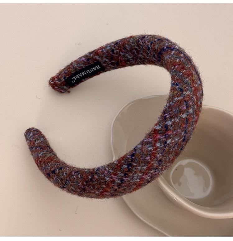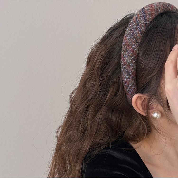 Outono Colorido Tecido de Lã Tricotado Faixa de Cabelo Nova Esponja Engrossada Faixa de Cabelo Retro Versátil Rua Acessórios de Cabelo