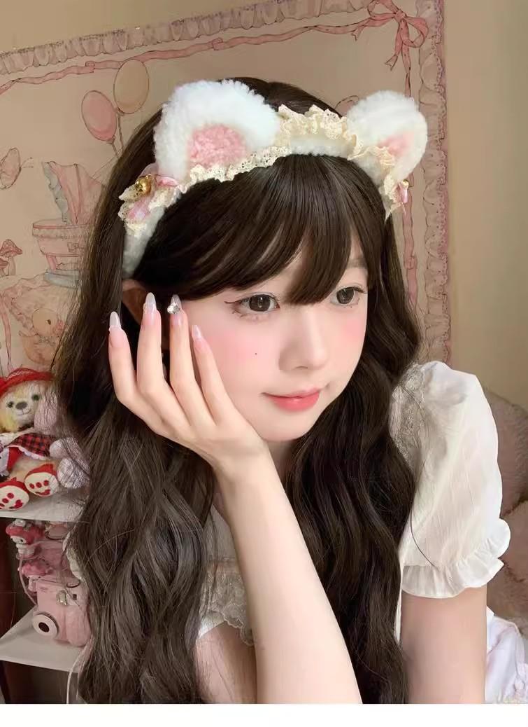 Lolita Cute Bow Hair Hoop Cat Ear Wash Face Hair Hoop Hair Clip Antiderrapante Hair Stopper Acessórios de cabelo populares na Internet para mulheres