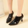 Salto Alto Salto Agulha Feminino 2025 Novo Outono e Inverno Zíper Frontal Retrô Britânico Sapatos Femininos Recortados Bico Fino Boca Profunda Flats