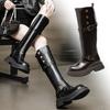 Botas pretas estilo britânico retrô salto grosso fundo grosso botas femininas 2024 outono e inverno nova chegada botas cano alto botas de cavaleiro emagrecedoras