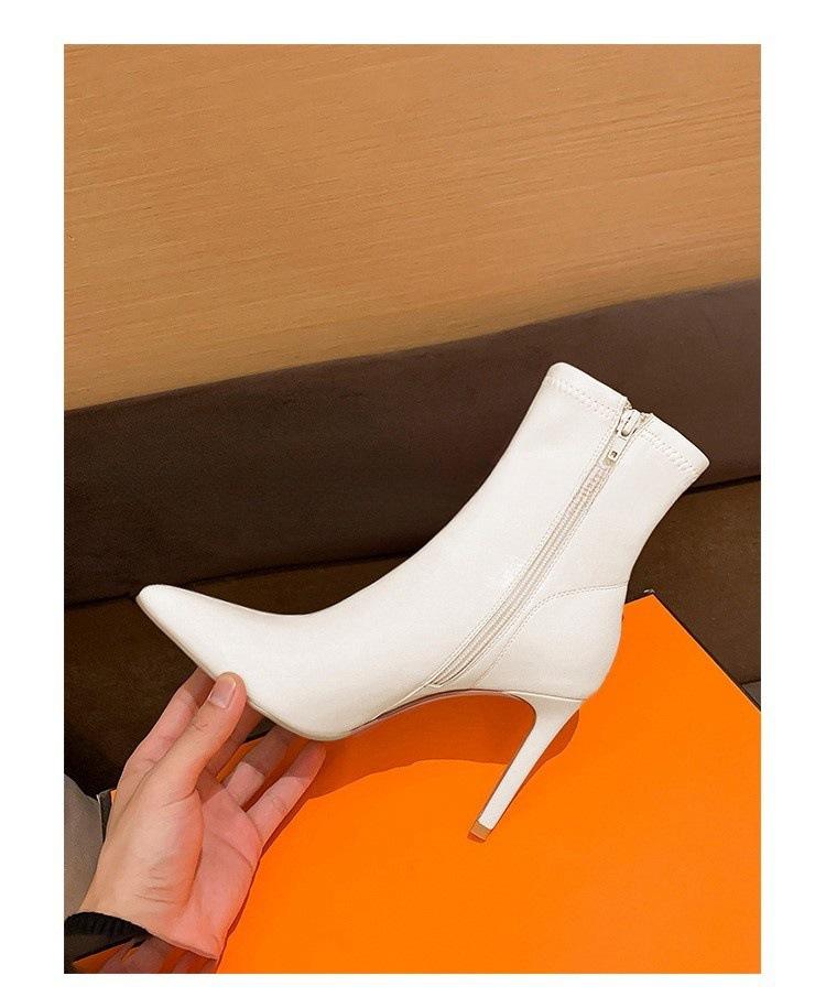 Botas Femininas 2024 Novo Inverno Salto Alto Stretch Botas Finas branco-cremoso Botas Curtas de Salto Fino Mulheres
