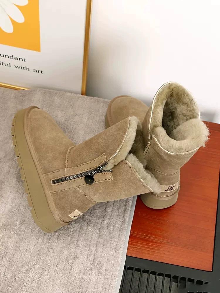 Compre Botas de Neve Nordeste para Mulheres 2024 Novas Inverno Mid-barrel Fur One Fundo Grosso Forrado com Zíper Grosso Sapatos de Algodão Quente no atacado no Joom.pro