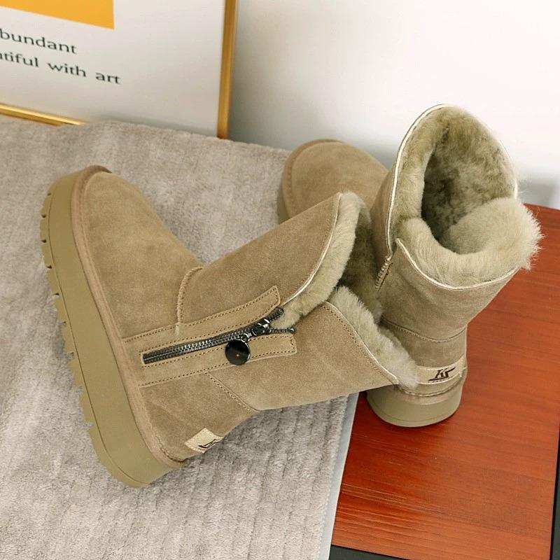 Botas de Neve Nordeste para Mulheres 2024 Novas Inverno Mid-barrel Fur One Fundo Grosso Forrado com Zíper Grosso Sapatos de Algodão Quente
