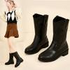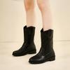 Botas Western Retrô Cabeça Redonda Boca V Feminino Outono e Inverno 2024 Estilo Britânico Salto Grosso Botas de Cavaleiros Médio-Alto Botas Curtas