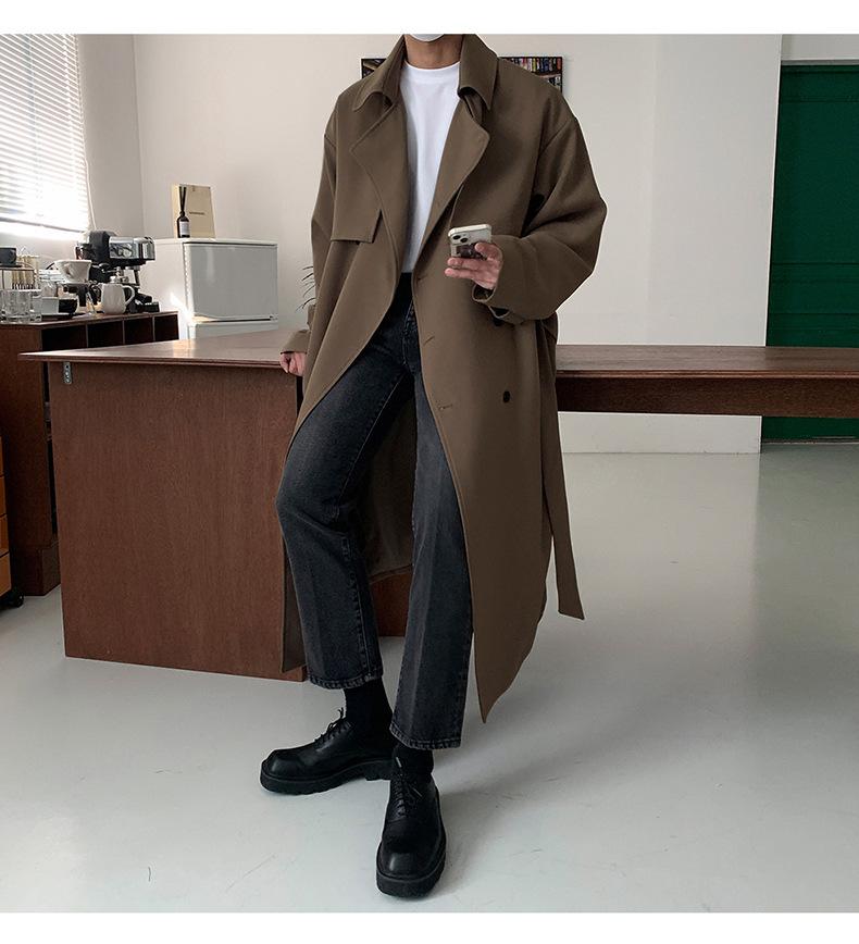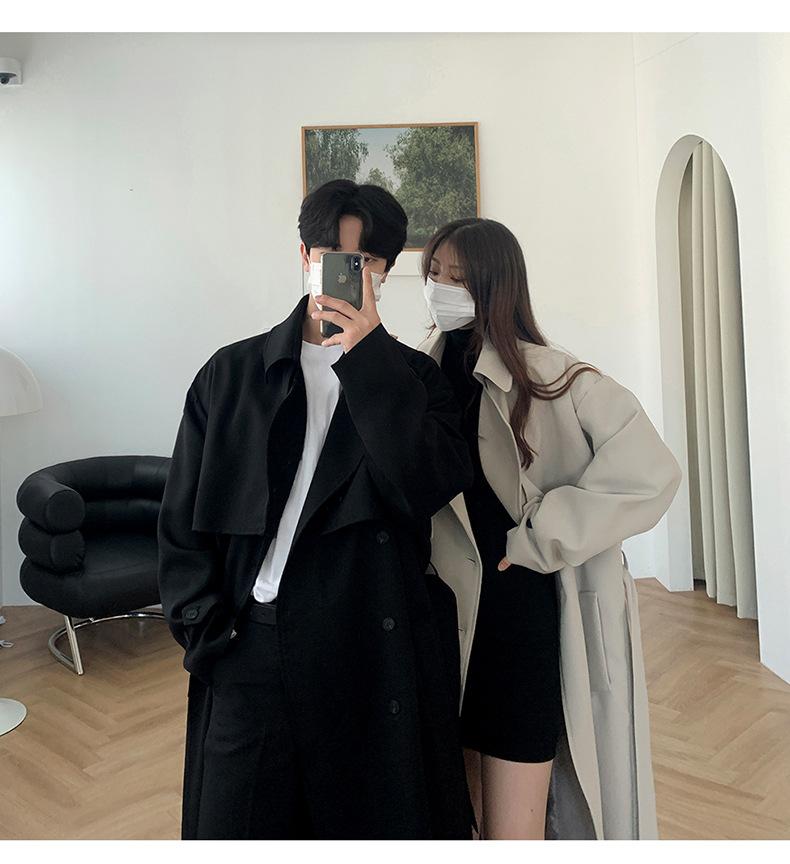 2024 novo trench coat masculino marca de moda coreana solta acima do joelho calças de casal trench coat