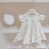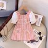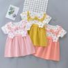 Vestido de verão para meninas, vestido de princesa falso de duas peças para crianças pequenas e médias, vestido de verão feminino para bebês, vestido de manga curta de verão