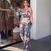 2024 Amazon Transfronteiriço Verão Roupas Europeias e Americanas Ins Nova Moda Decote Redondo Cordão Ajustável Macacão Slim Estampado