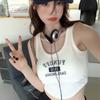 Novo Top Tricotado Assimétrico Estilo Coreano Suave Gola Redonda Bordado de Letras Primavera e Verão 2023 Camisole para Mulheres