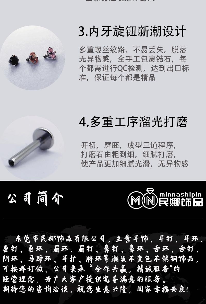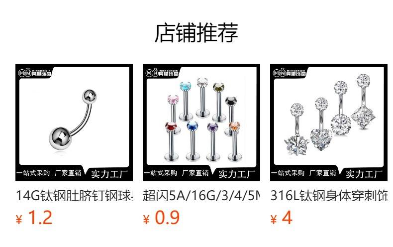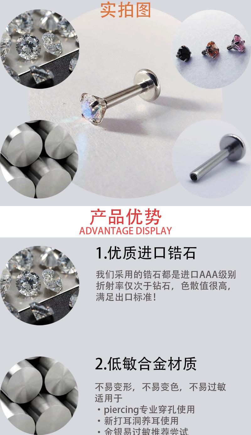 Unhas de lábio de zircônia redonda de grau AAA europeias e americanas, unha de língua, unha de osso de orelha, unha de fundo plano, unha de orelha, aço médico, produto de punção de aço de titânio