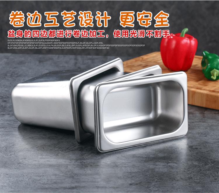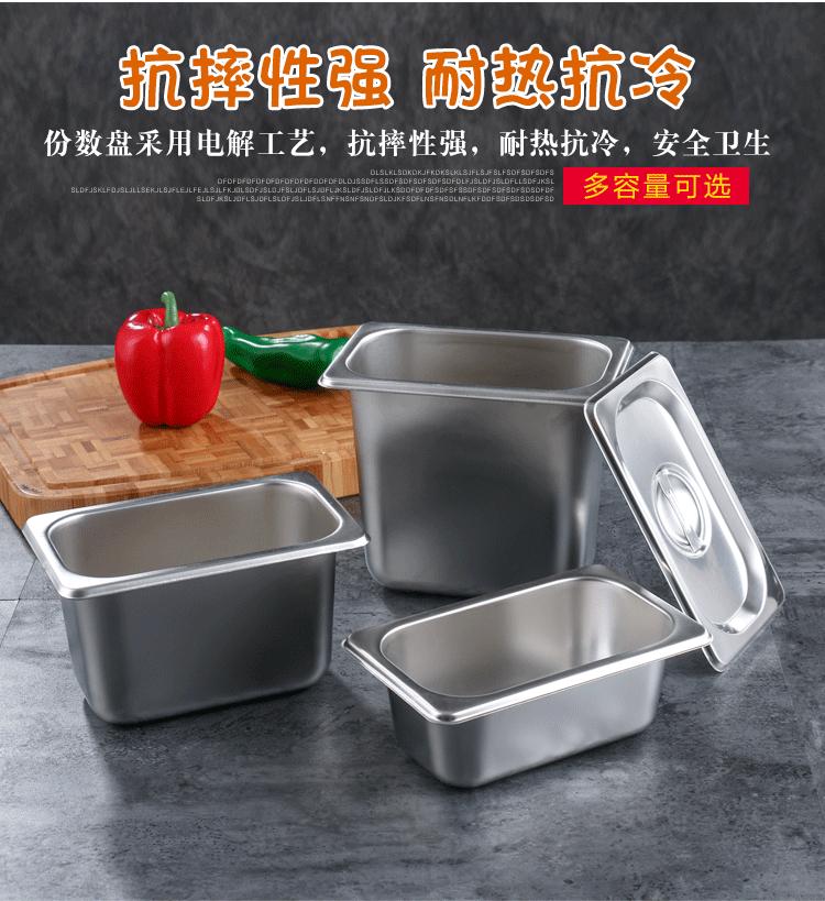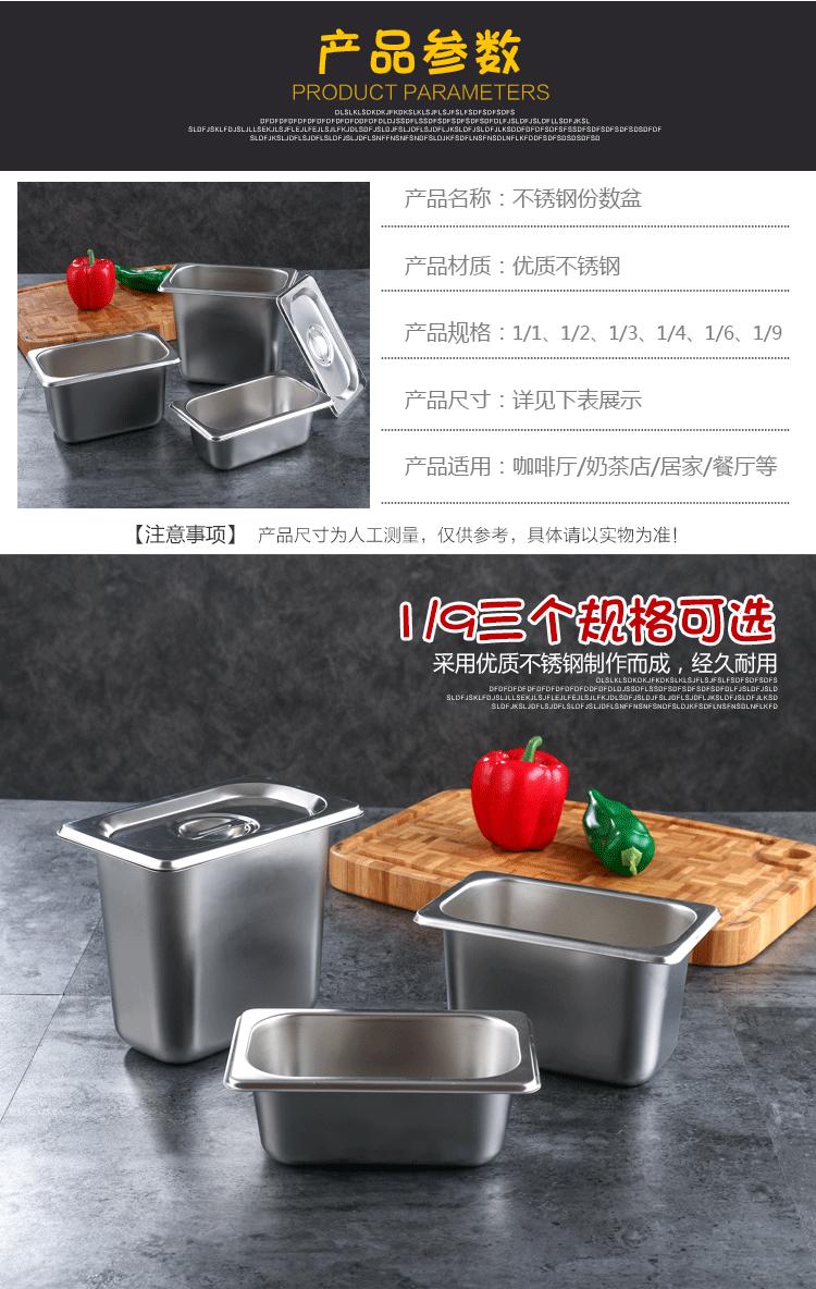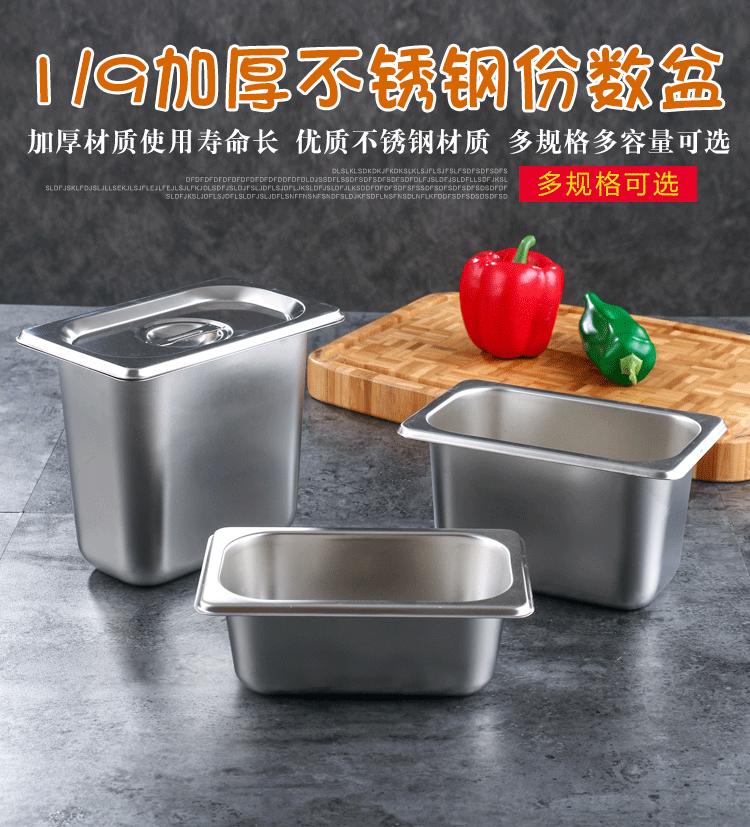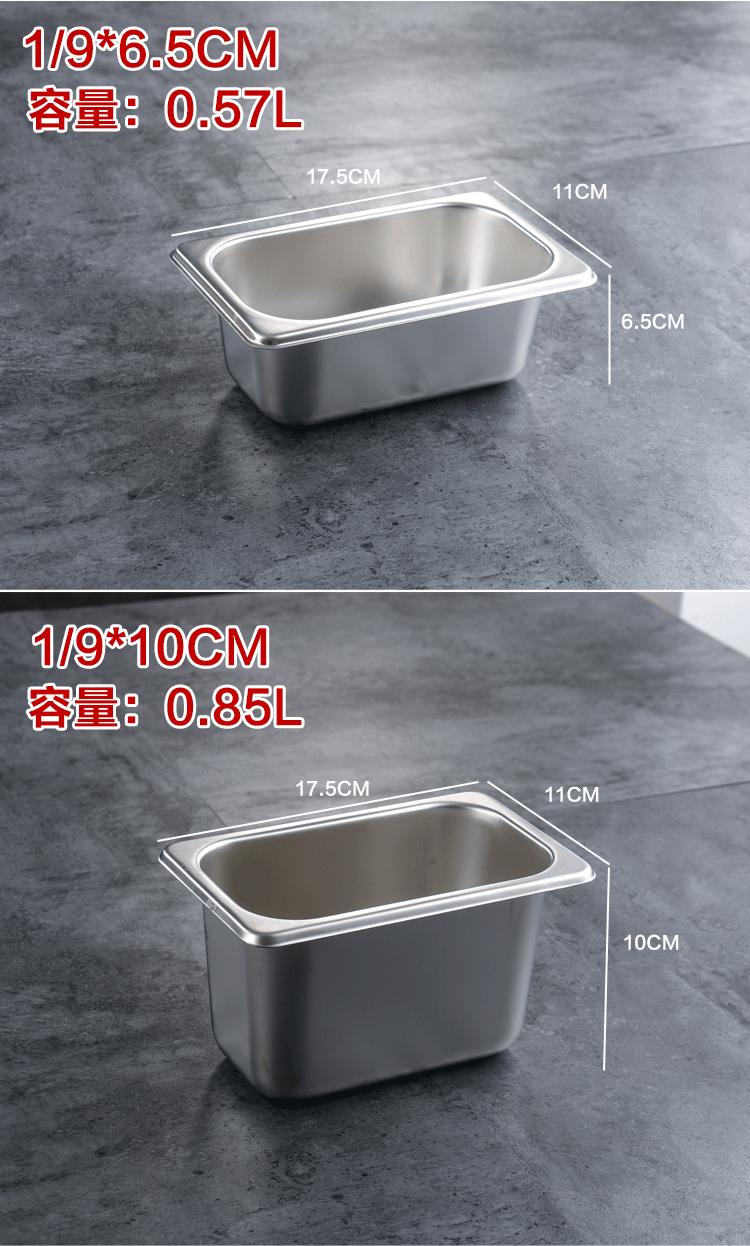 Introdução do produto: Nome do produto (bacia de porção de aço inoxidável 1/9), aço inoxidável espesso de alta qualidade (material 201) 1/9, há 3 tamanhos para escolher. O comprimento e a largura da bacia são 17,5 cm e 11 cm