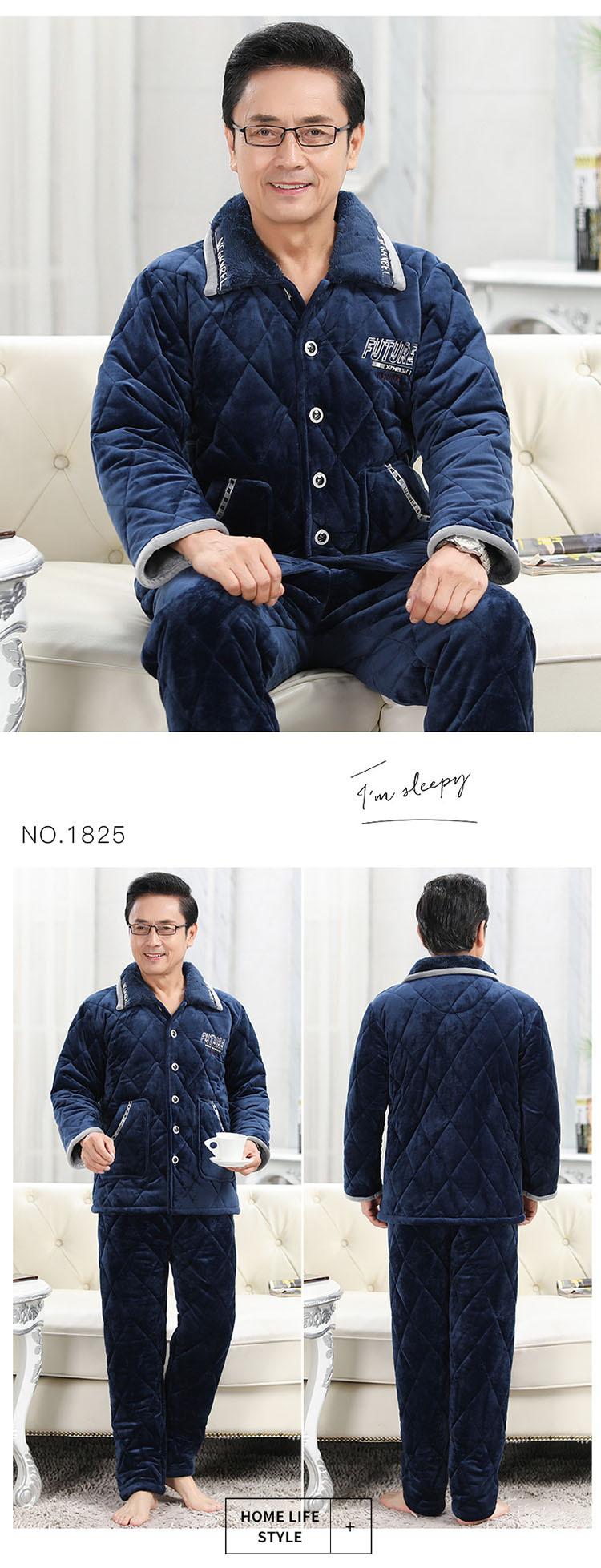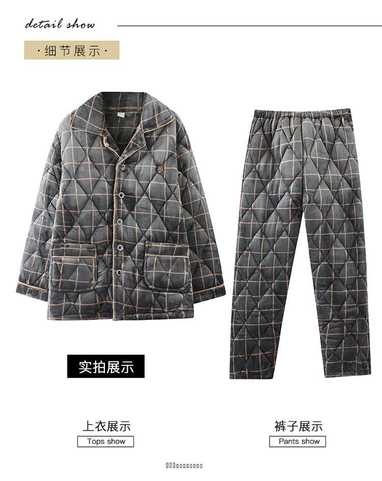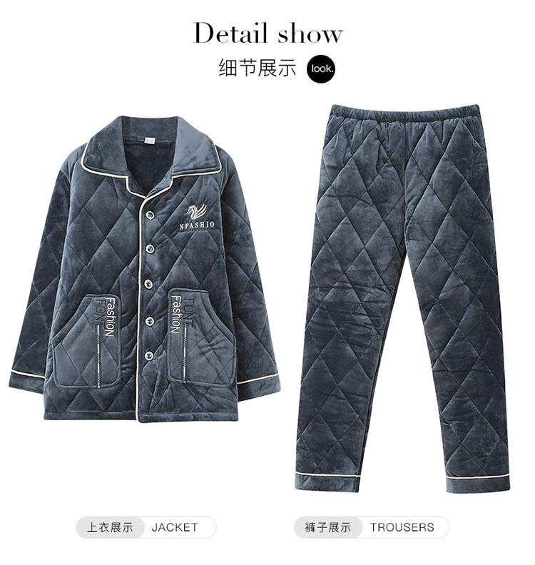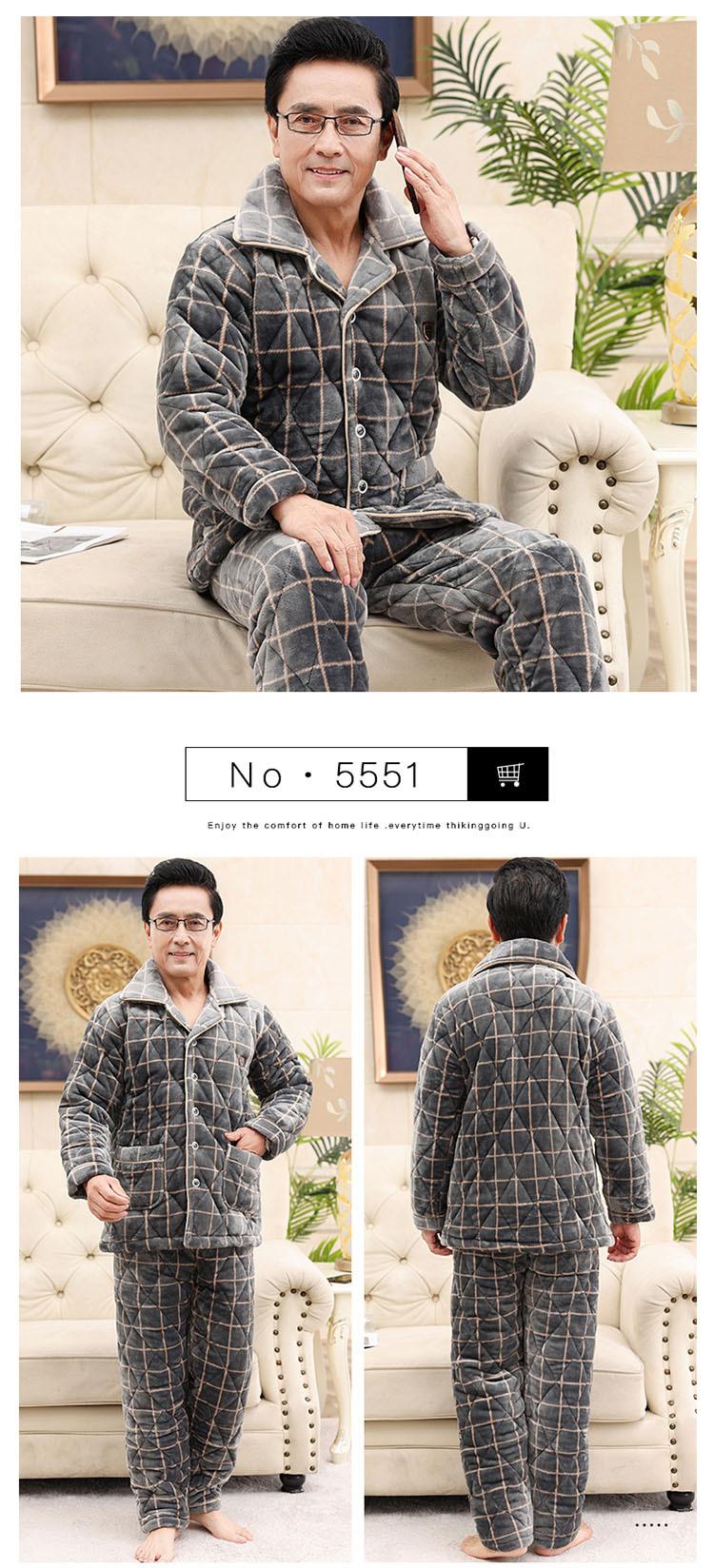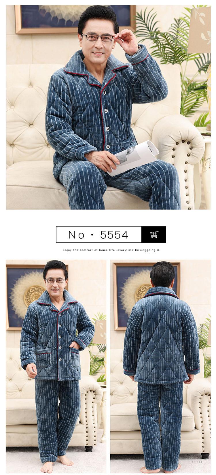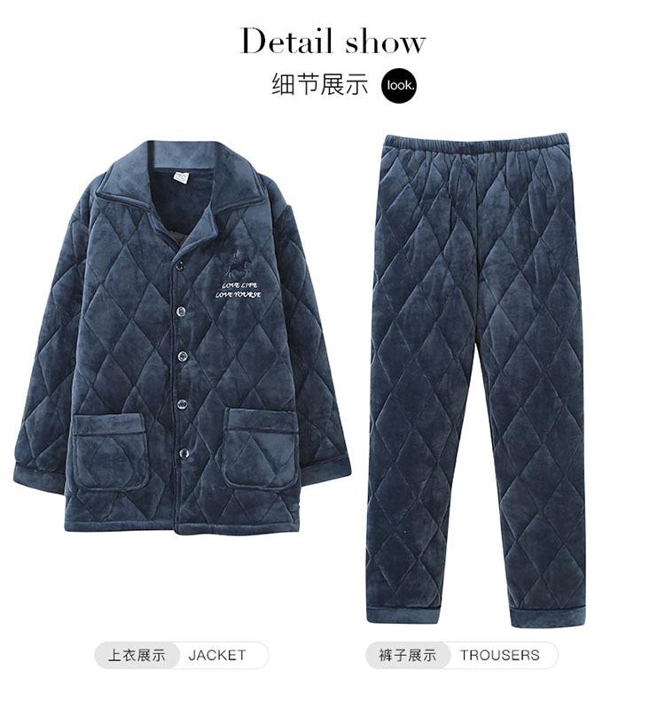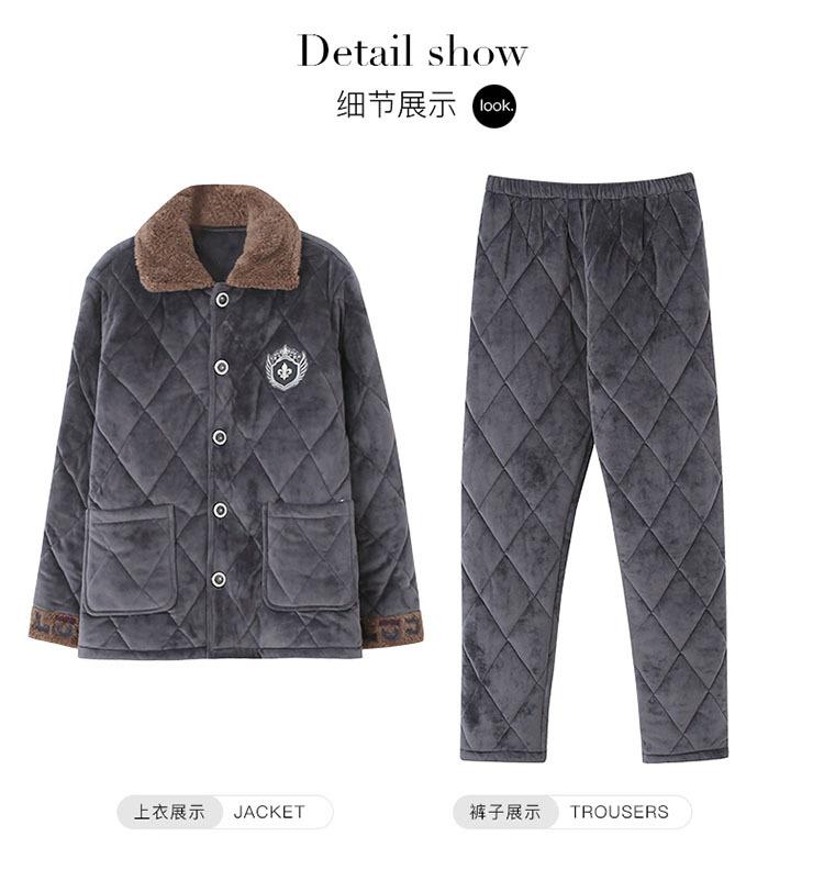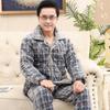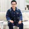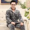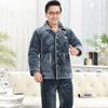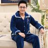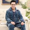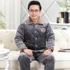 Pijama de lã coral masculino outono e inverno três camadas espessadas forrado de lã cardigan casual meia-idade e idosos flanela casa desgaste terno