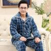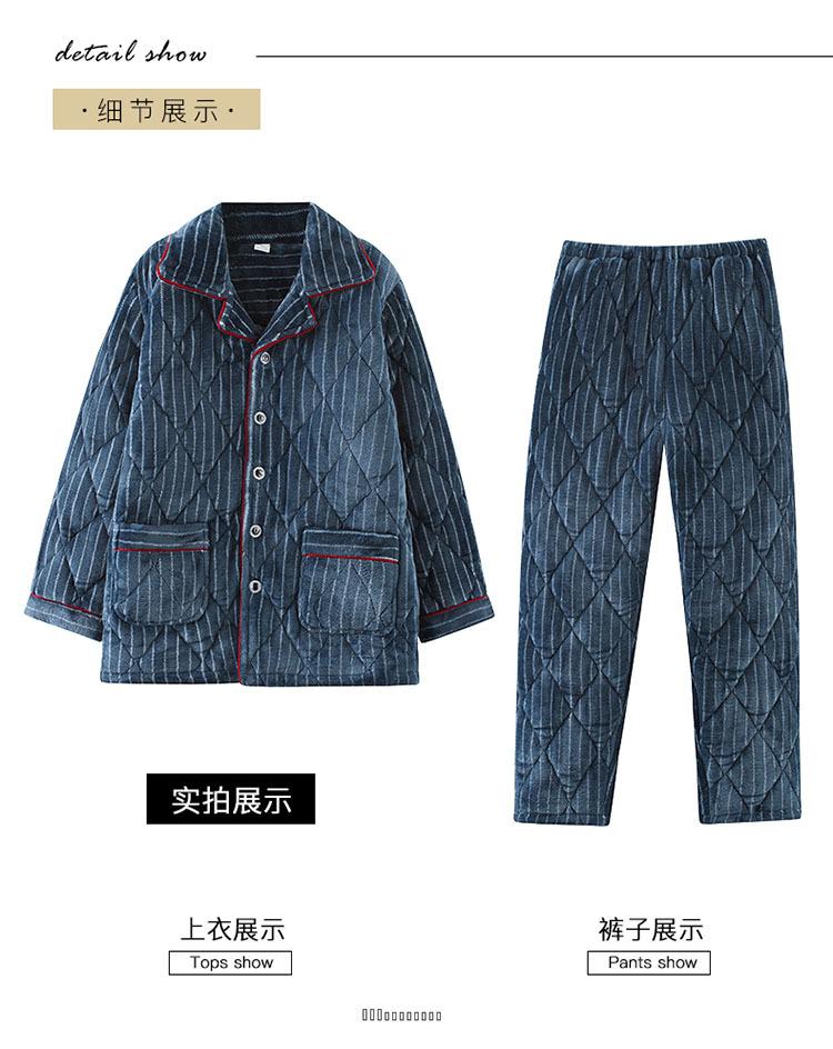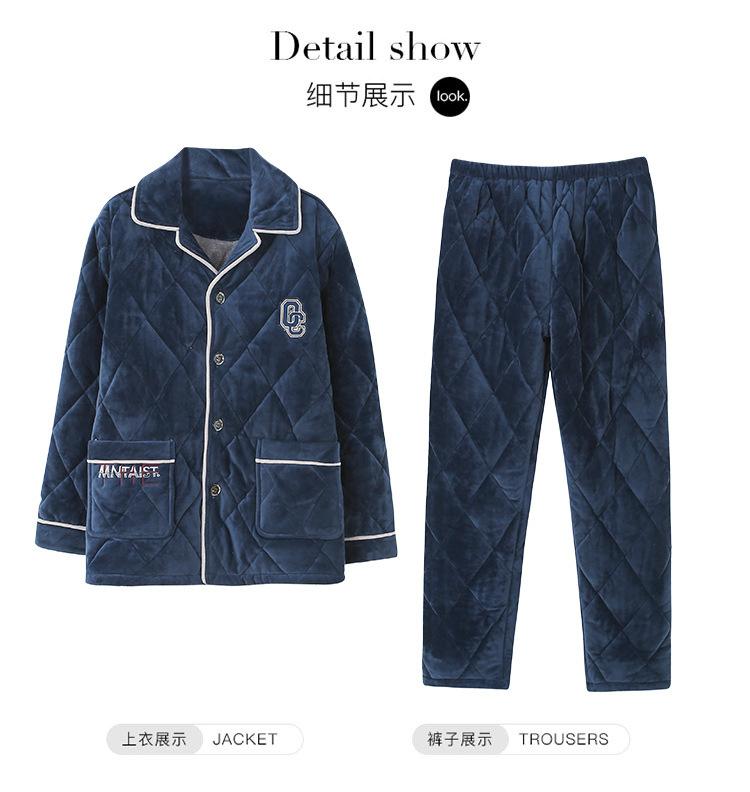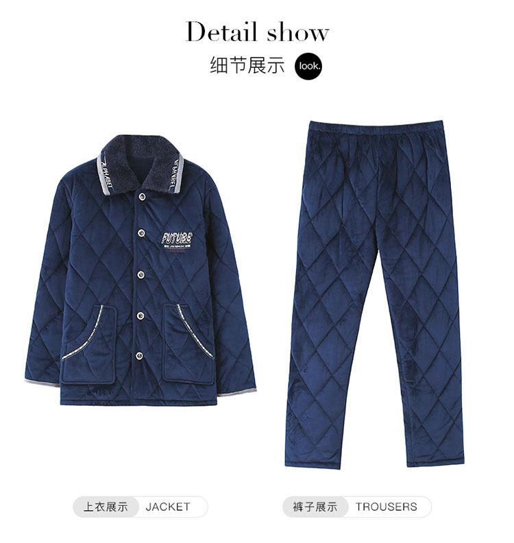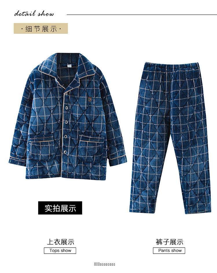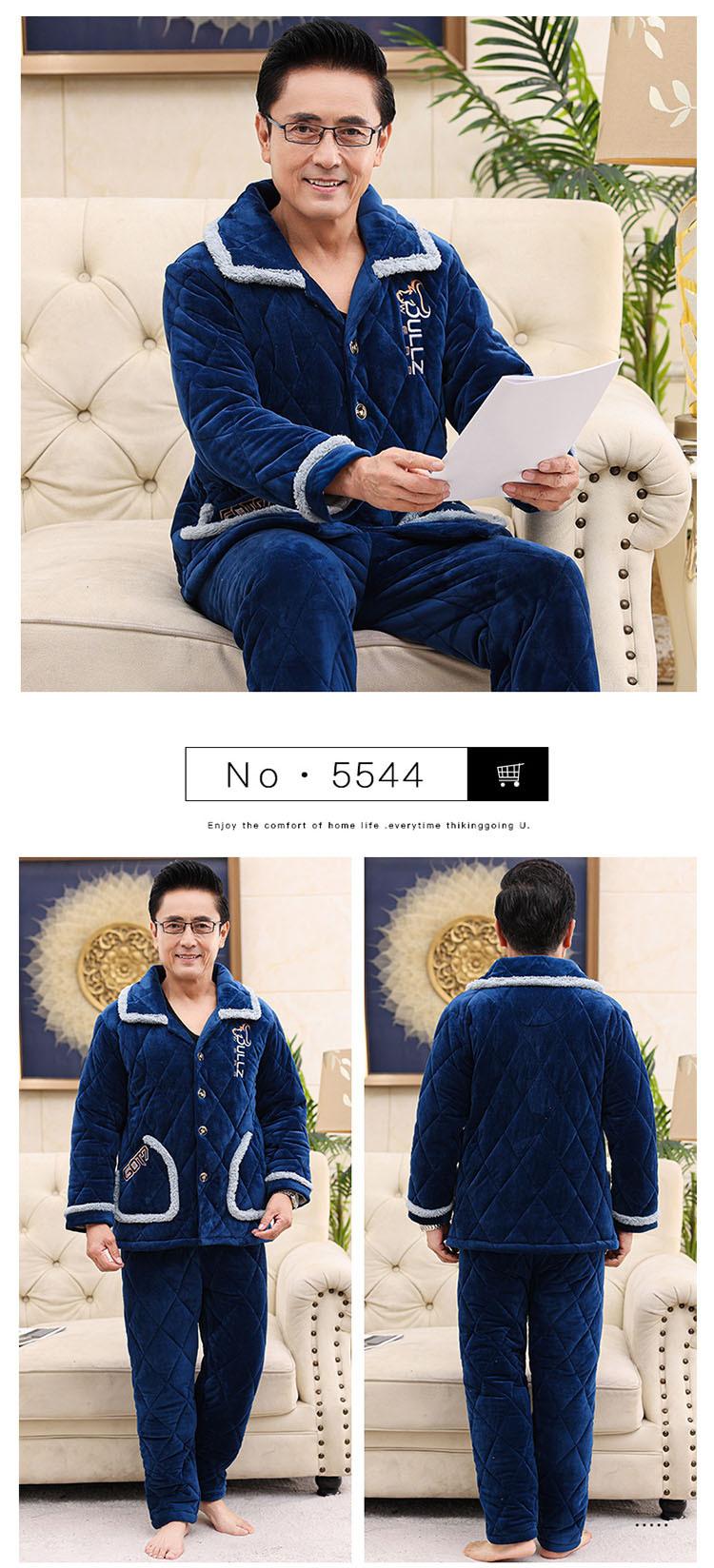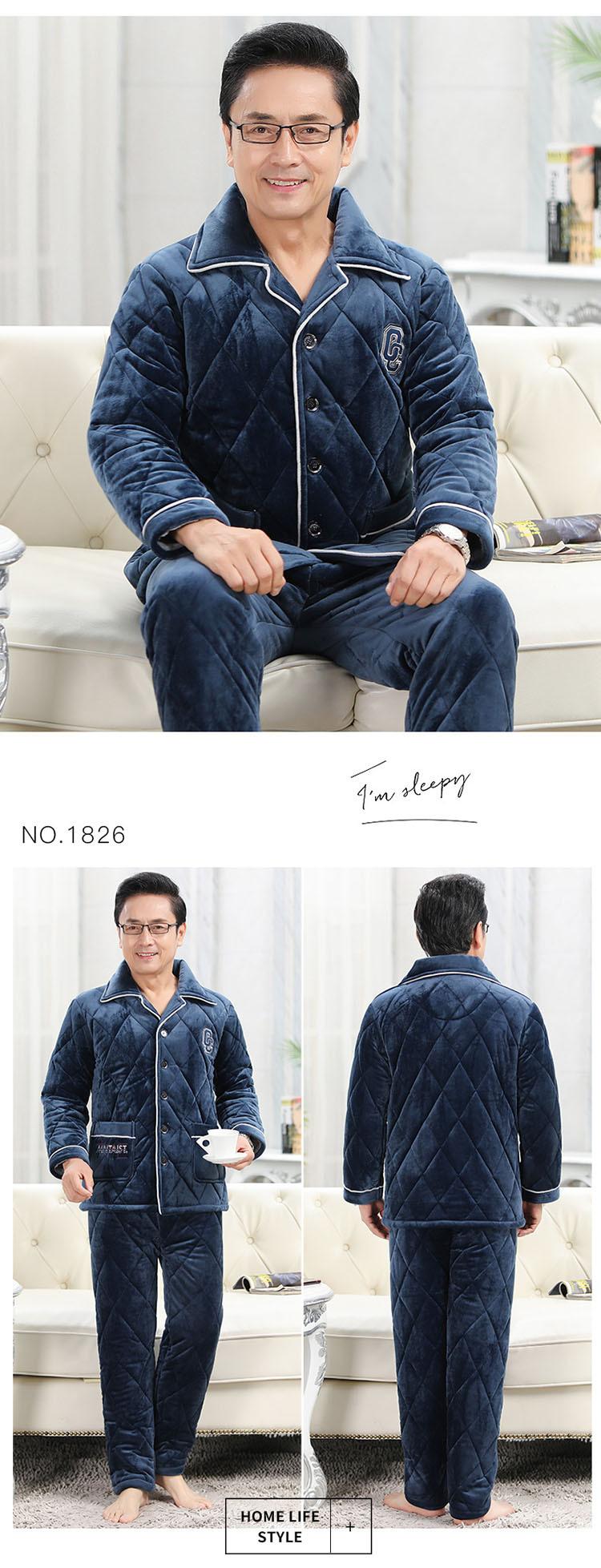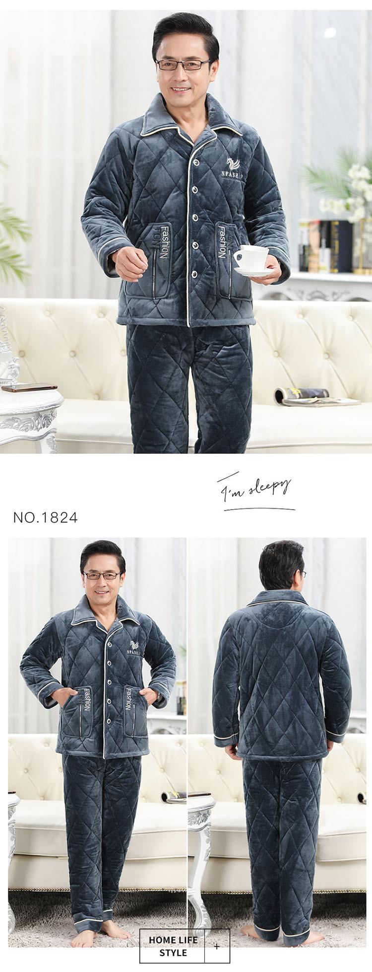 Pijama de lã coral masculino outono e inverno três camadas espessadas forrado de lã cardigan casual meia-idade e idosos flanela casa desgaste terno