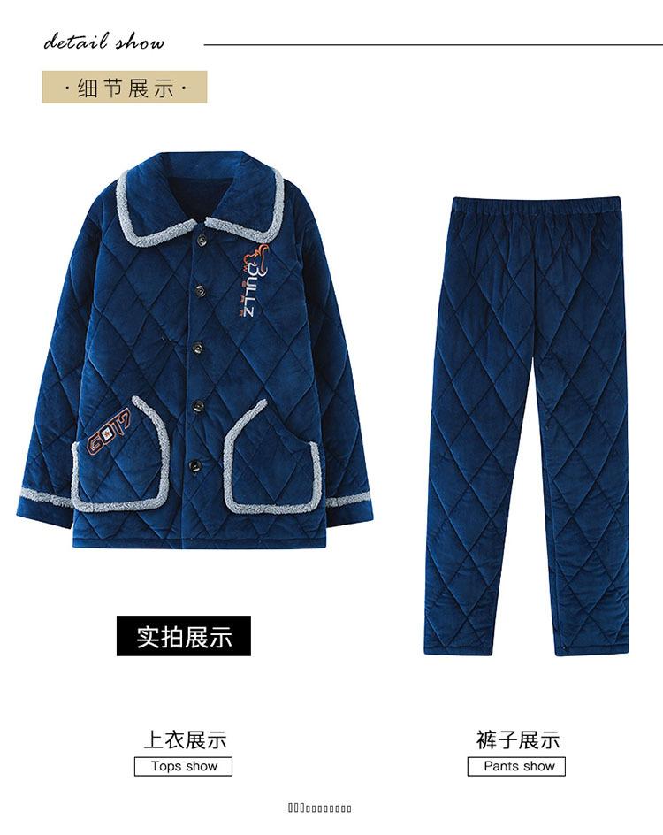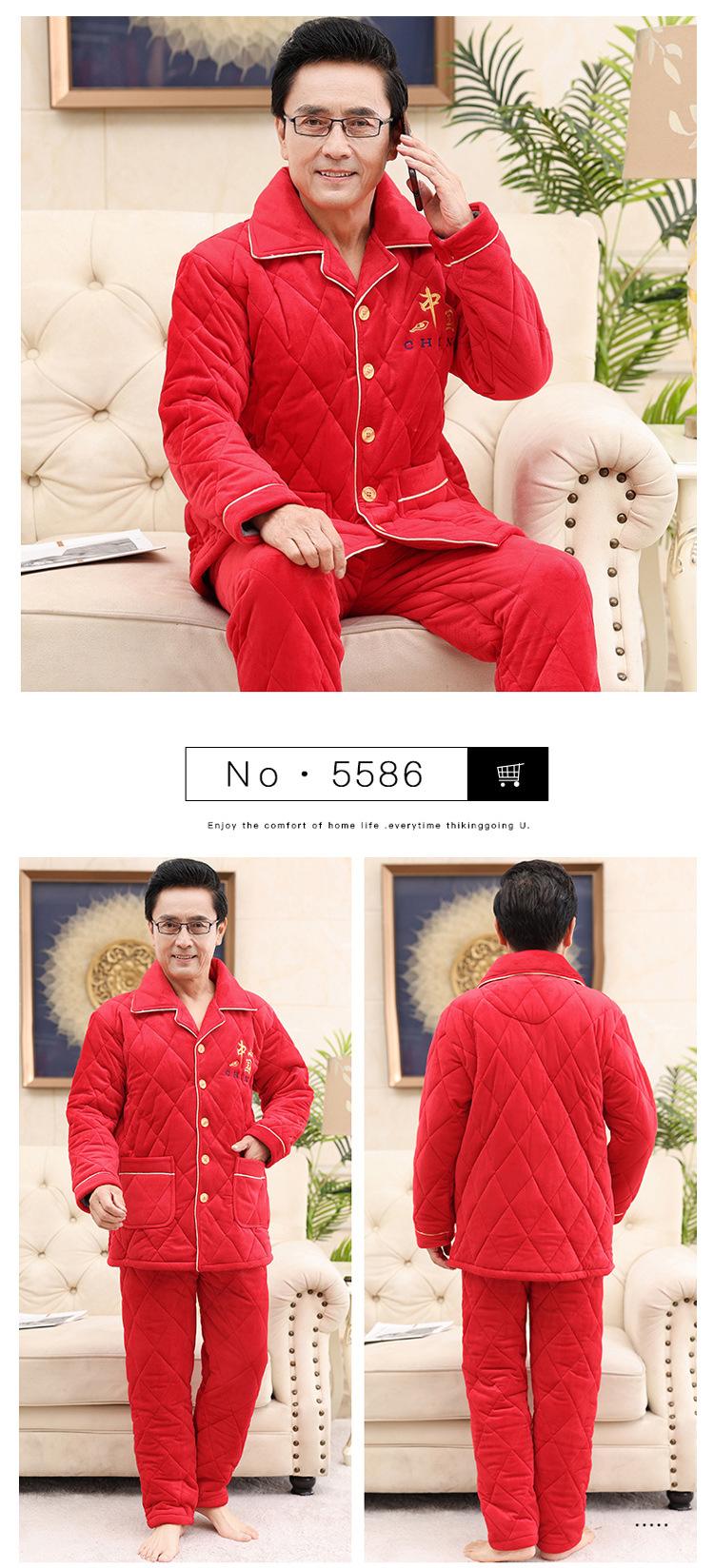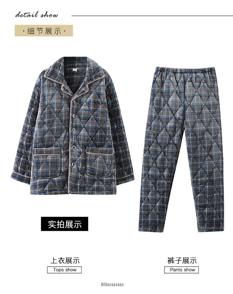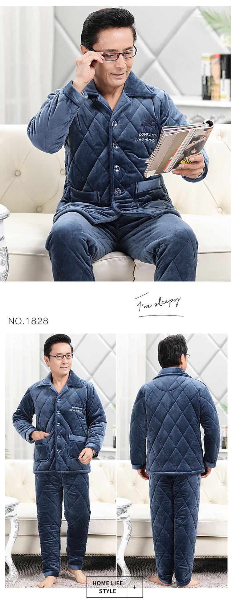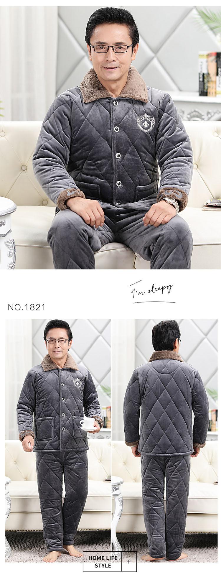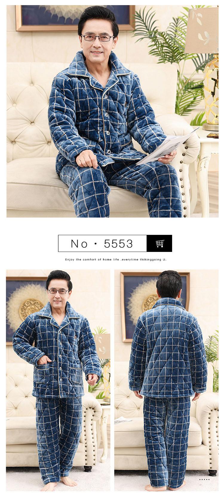 Pijama de lã coral masculino outono e inverno três camadas espessadas forrado de lã cardigan casual meia-idade e idosos flanela casa desgaste terno