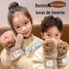 Luvas infantis de pelúcia fofas de urso outono e inverno à prova de vento luvas quentes com tudo incluído