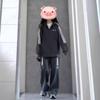 [Algodão Puro Algodão Chinês Composto] Roupa Esportiva Casual para Mulheres, Moletom Solto com Capuz e Calça de Moletom, Conjunto de Duas Peças com Aparência Emagrecedora, Cinza Escuro