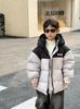 Jaqueta infantil de penas 2024 outono e inverno novos meninos e meninas três provas curto com capuz branco pato para baixo jaqueta de pão na moda