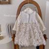Vestido estilo Chanel para meninas, outono e inverno, camisa com forro de lã, vestido de aniversário, vestido de princesa, vestido com colete de penas, terno