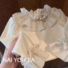 Camisa de Base de Veludo Creme com Renda 2025 Nova Roupa de Outono para Menina Bebê Moda Cor Sólida Versátil e Trbottomy