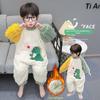 Pijama infantil de dinossauro, roupa de inverno para casa, saco de dormir, macacão de bebê, desenho animado, menino, flanela quente