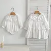 Vestido de menina primavera e outono gola de renda algodão puro bebê meninas escalada roupas para sair manga longa vestido de princesa estilo coreano irmãs
