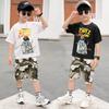 Conjunto de Verão com Manga Curta para Meninos 2026 Novo Estilo para Crianças Maiores, Roupa de Verão Camuflada Estilo Coreano Tendência para Meninos