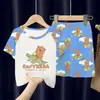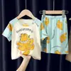Pijamas infantis verão fino meninas meninos roupas para casa crianças verão manga curta ar condicionado terno meninas roupas de verão