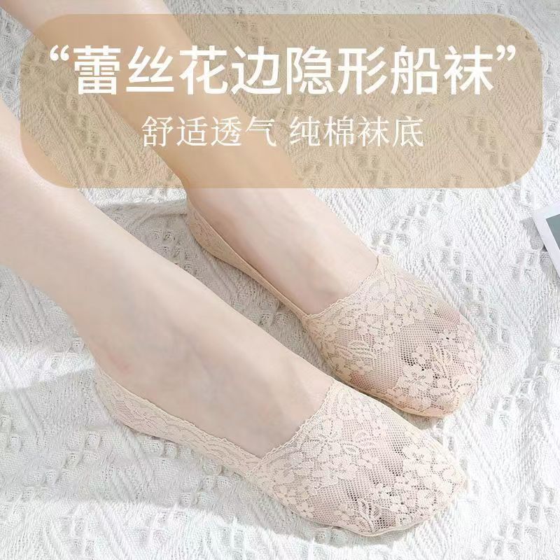 Meias Sapatilha Femininas Verão Finas Renda Meias Invisíveis Respiráveis Antibacterianas Absorventes de Suor Desodorantes Meias Femininas Verão Simples