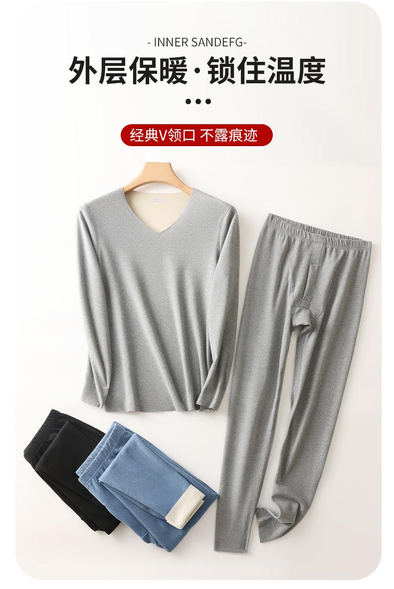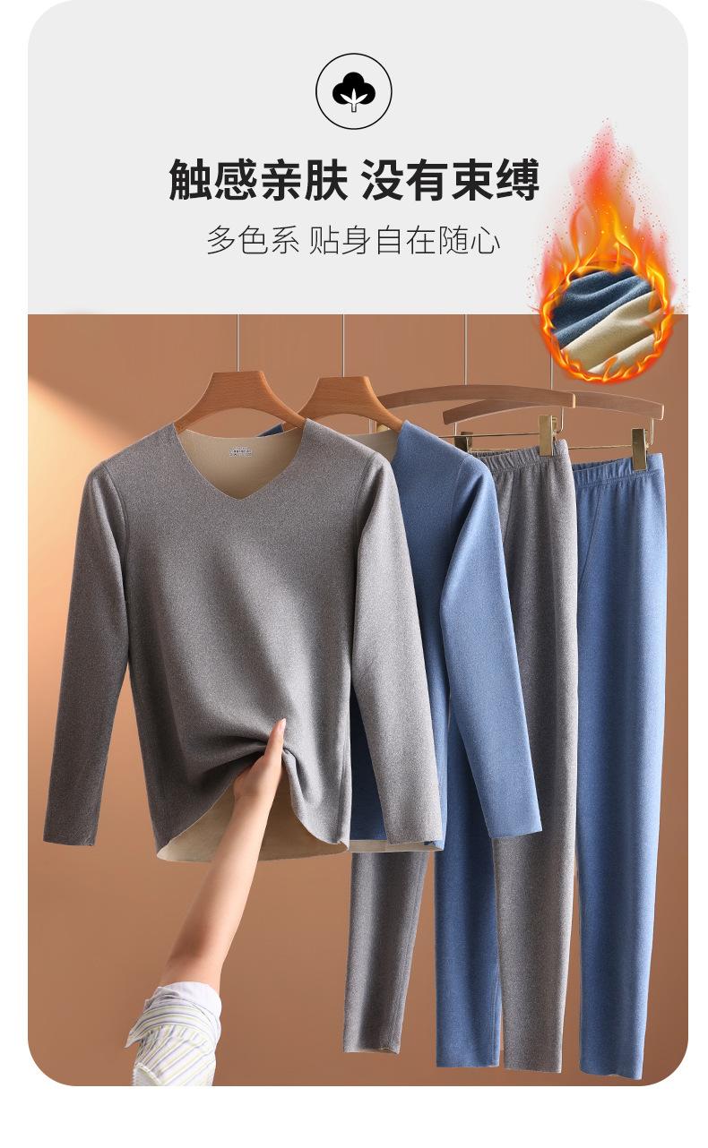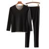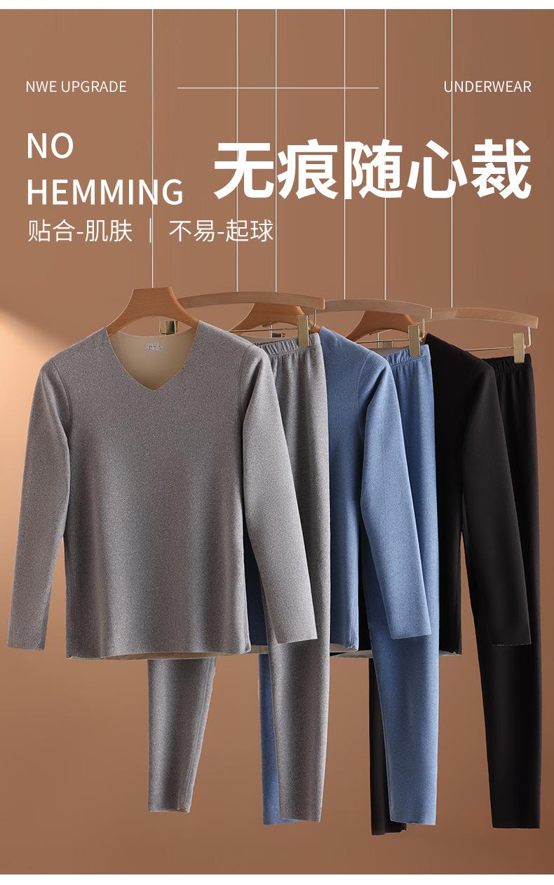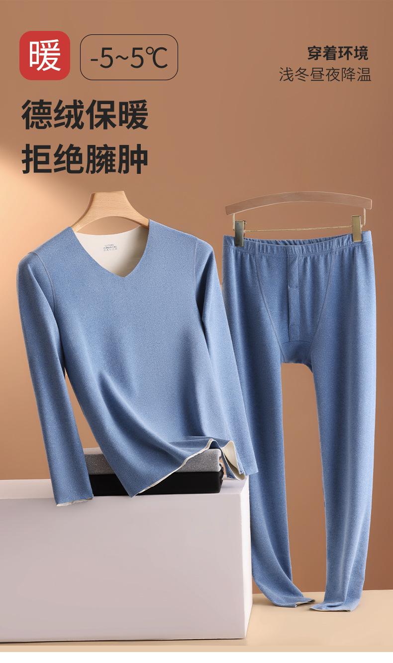 Roupa íntima térmica masculina, terno de veludo alemão, forro de lã, manga comprida, gola redonda, roupas de outono, calças de outono, conjunto de camisa e cueca